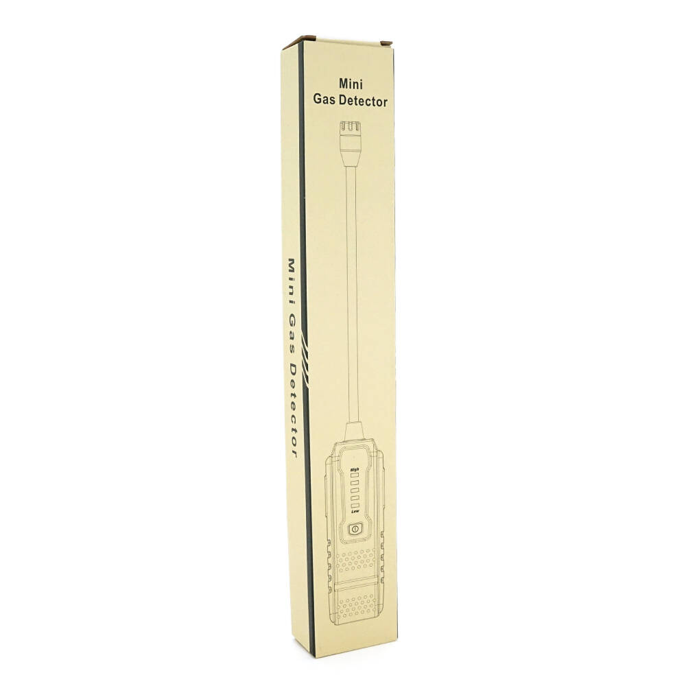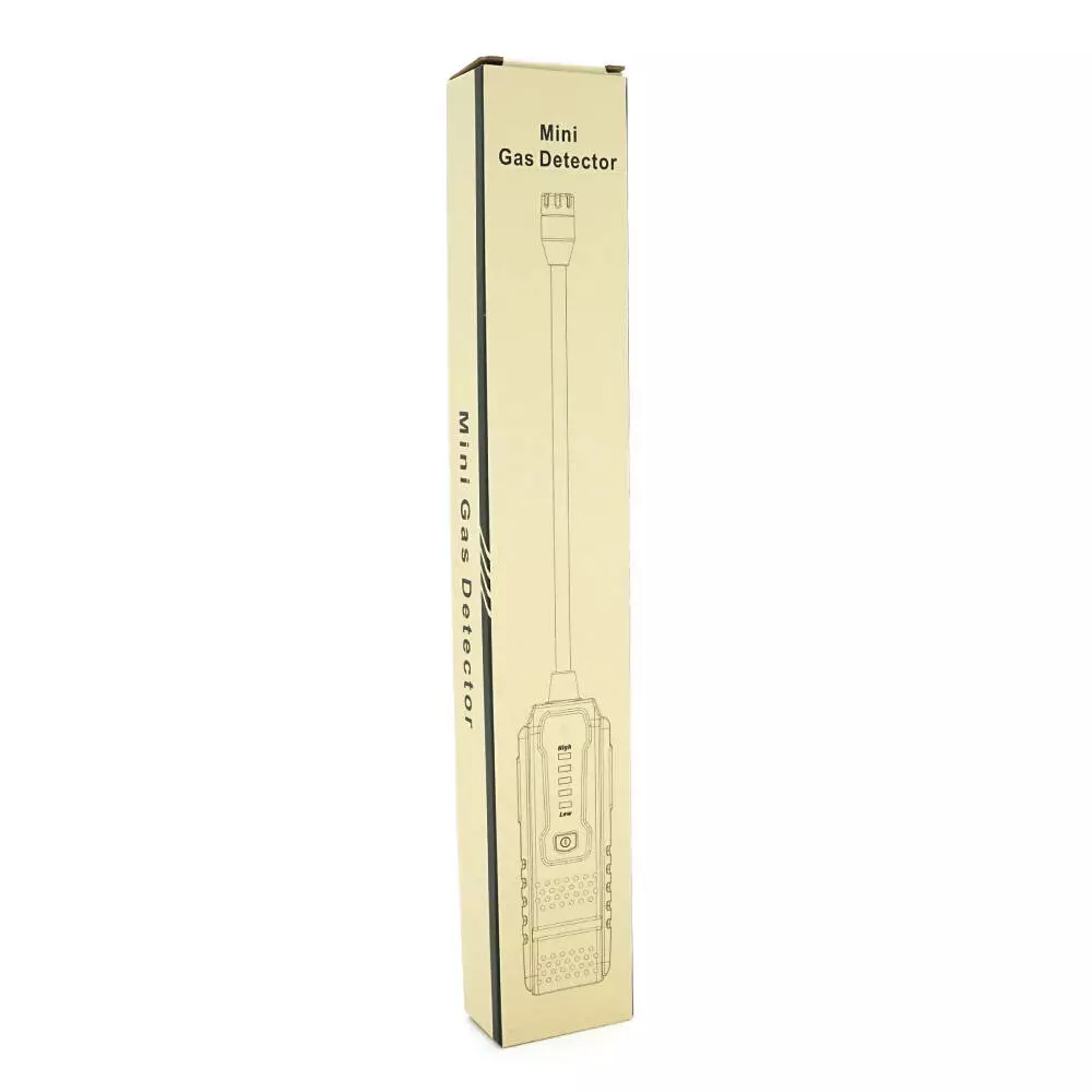 Пристрій має напівпровідниковий газовий сенсор, що забезпечує високу чутливість виявлення. Світлодіодна індикація та звукова сигналізація попереджають про виявлення витоку: чим вища концентрація газу, тим частіше звукові сигнали та більше світлових індикаторів активується. Автоматичне вимкнення через 5 хвилин бездіяльності заощаджує заряд батареї.