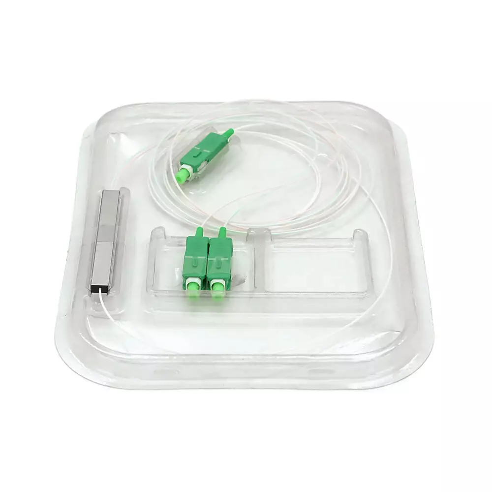 Дільник Coupler PLC-1x2-split-0-SC/APC-0.9mm призначений для поділу оптичного сигналу на два виходи з використанням роз'ємів SC/APC та оптоволоконного кабелю діаметром 0,9 мм.