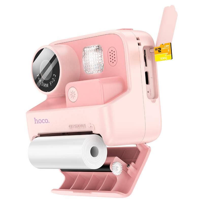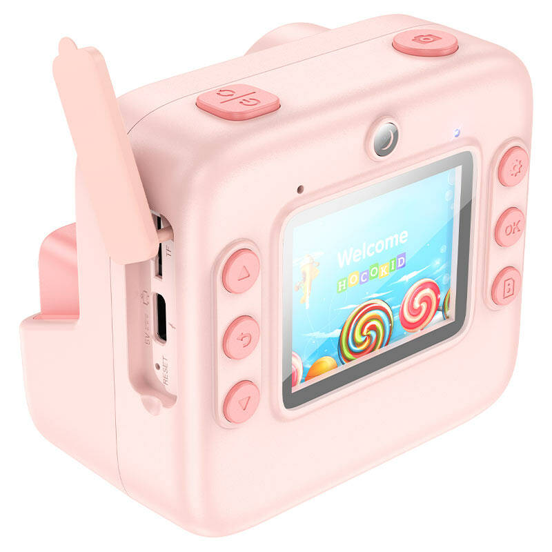 Дитячий фотоапарат HOCO DV200 з двома камерами та функцією миттєвого друку, підтримка microSD card, Pink, Box