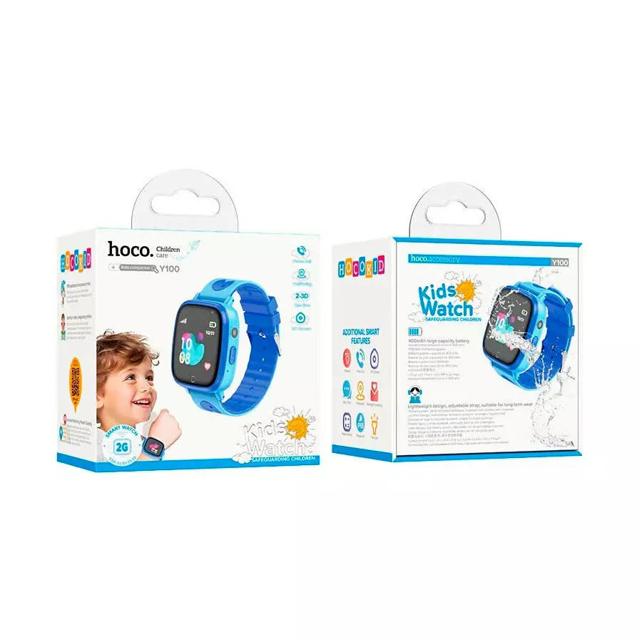 Дитячий смарт годинник Hoco Y100, функція дзвінка та камера, кнопка SOS, ліхтарик, Blue, Box