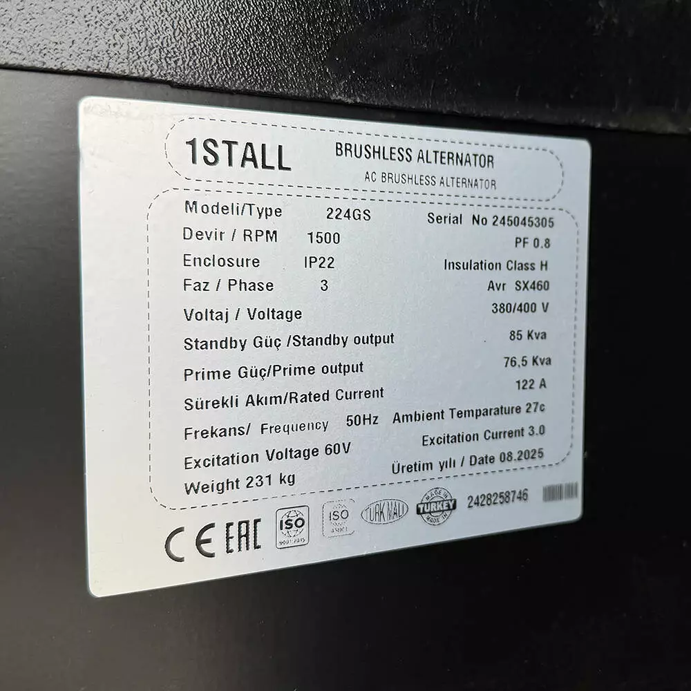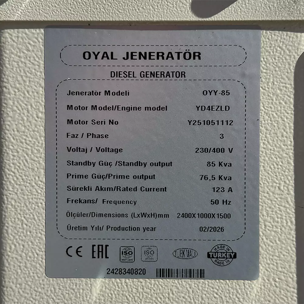 Дизельний генератор OYAL OYY-85 YANG DONG Y4EZLD 80KVA/64KW, Альтернатор OYL224F, витрата 75% навантаження - 10,5 літрів/год, 230/400 В, 50 Гц (AVR+ATS) 2400*1000*1500 мм, 1100 кг, 170 л