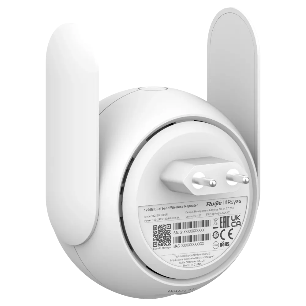 Двохдіапазонний Mesh Wi-Fi репітер Ruijie Reyee RG-EW1200R, 2.4 GHz/300 Mbps, 5 GHz/867 Mbps 128х102х60 мм