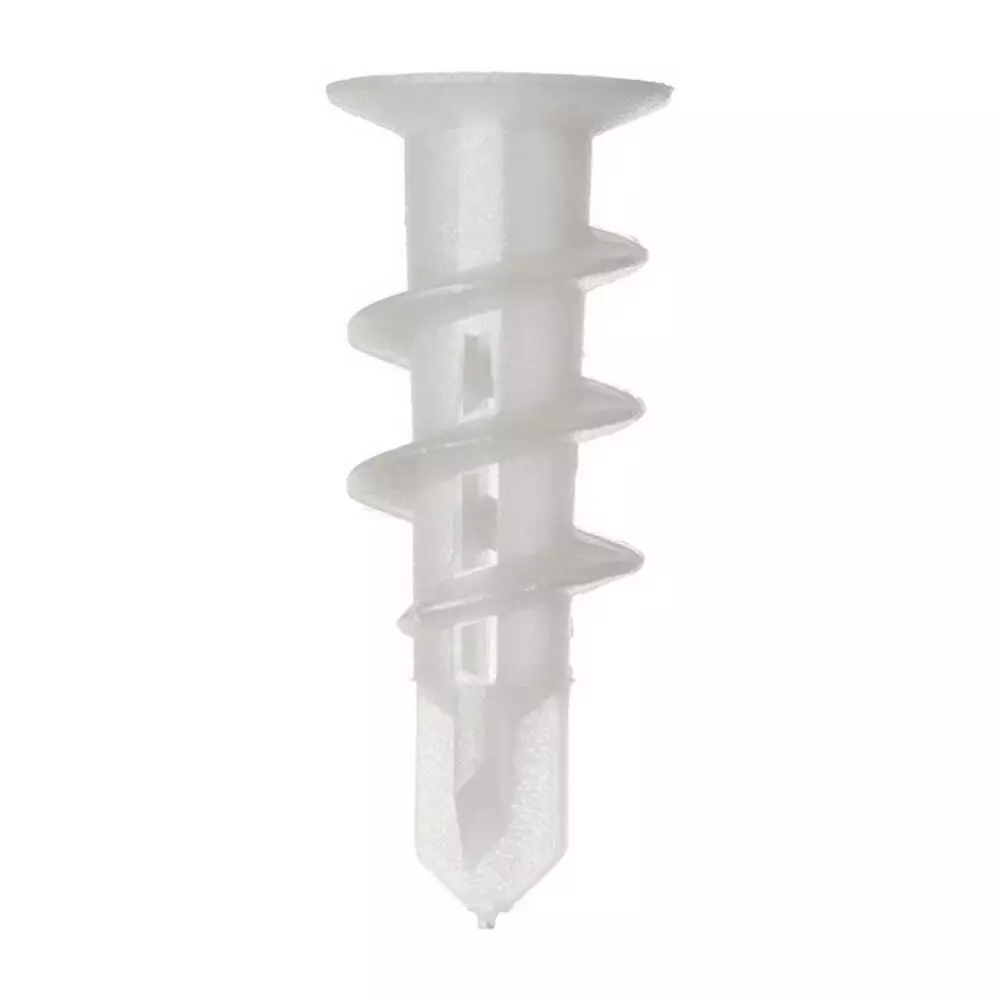 Ще одна перевага цього дюбеля — для нього не треба свердлити попереднє отвір, цей дюбель вже має різьбу і легко вкручується у гіпсокартон звичайним шуруповертом або навіть викруткою.