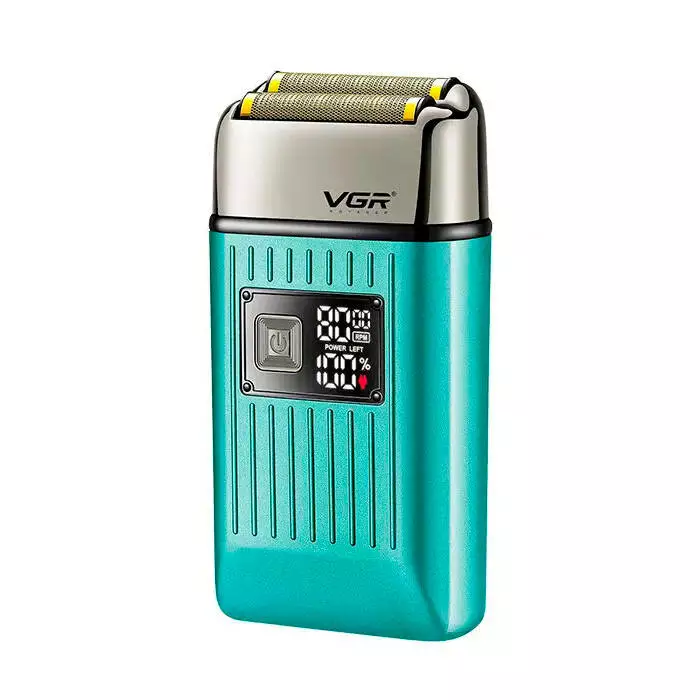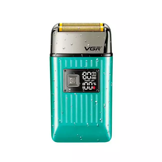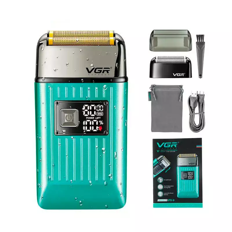 Електробритва VGR V-357 GREEN, подвійне лезо, 2 насадки, висувний триммер, IPX6, LED display, Box