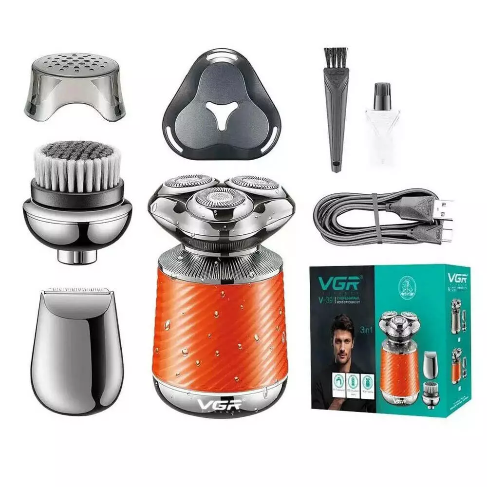Електробритва VGR V-391 ORANGE, 3 насадки, IPX7, LED display, Box