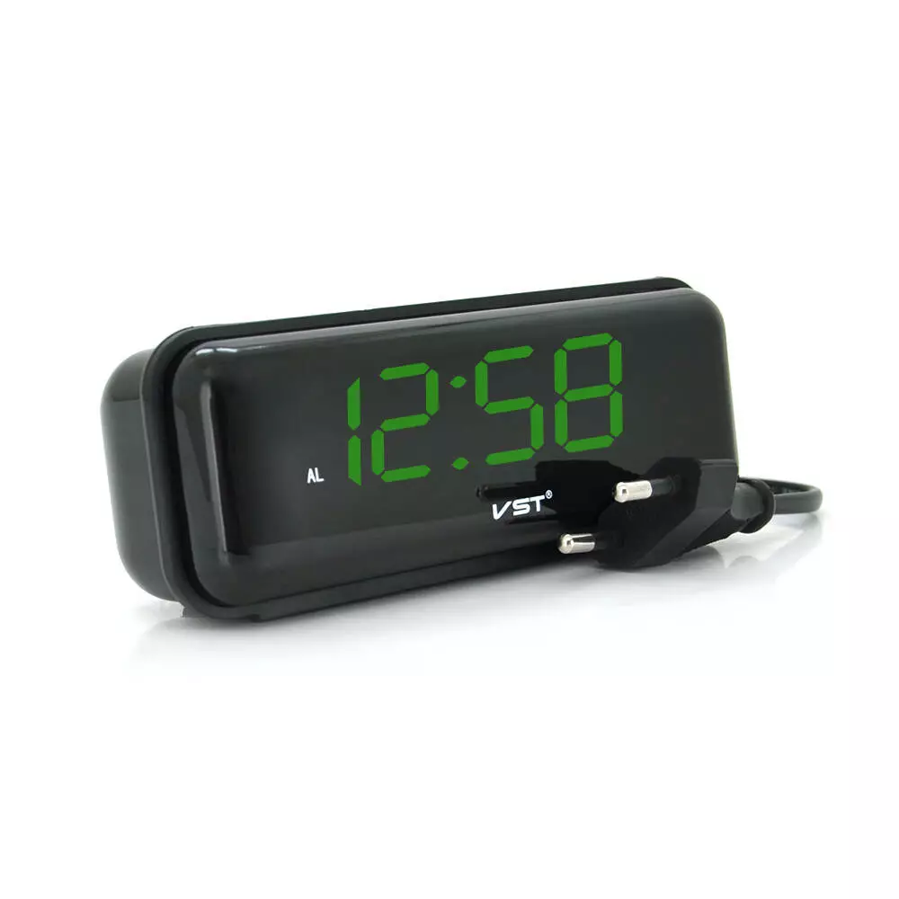 Електронний годинник VST-738, будильник, живлення від кабелю 220V, Green Light