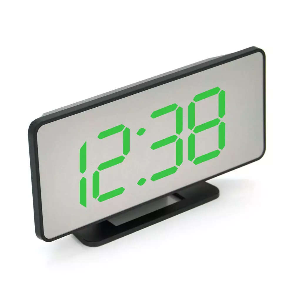 Електронний годинник VST-888Y Дзеркальний дисплей, з датчиком температури та вологості, будильник, живлення від кабелю USB, Green