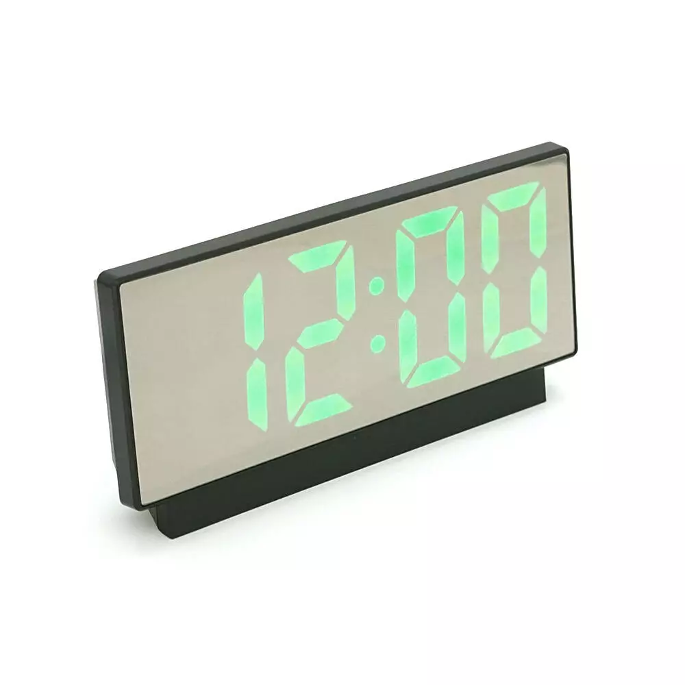 Електронний годинник VST-897 Дзеркальний дисплей, з датчиком температури та вологості, будильник, живлення від кабелю USB, Green
