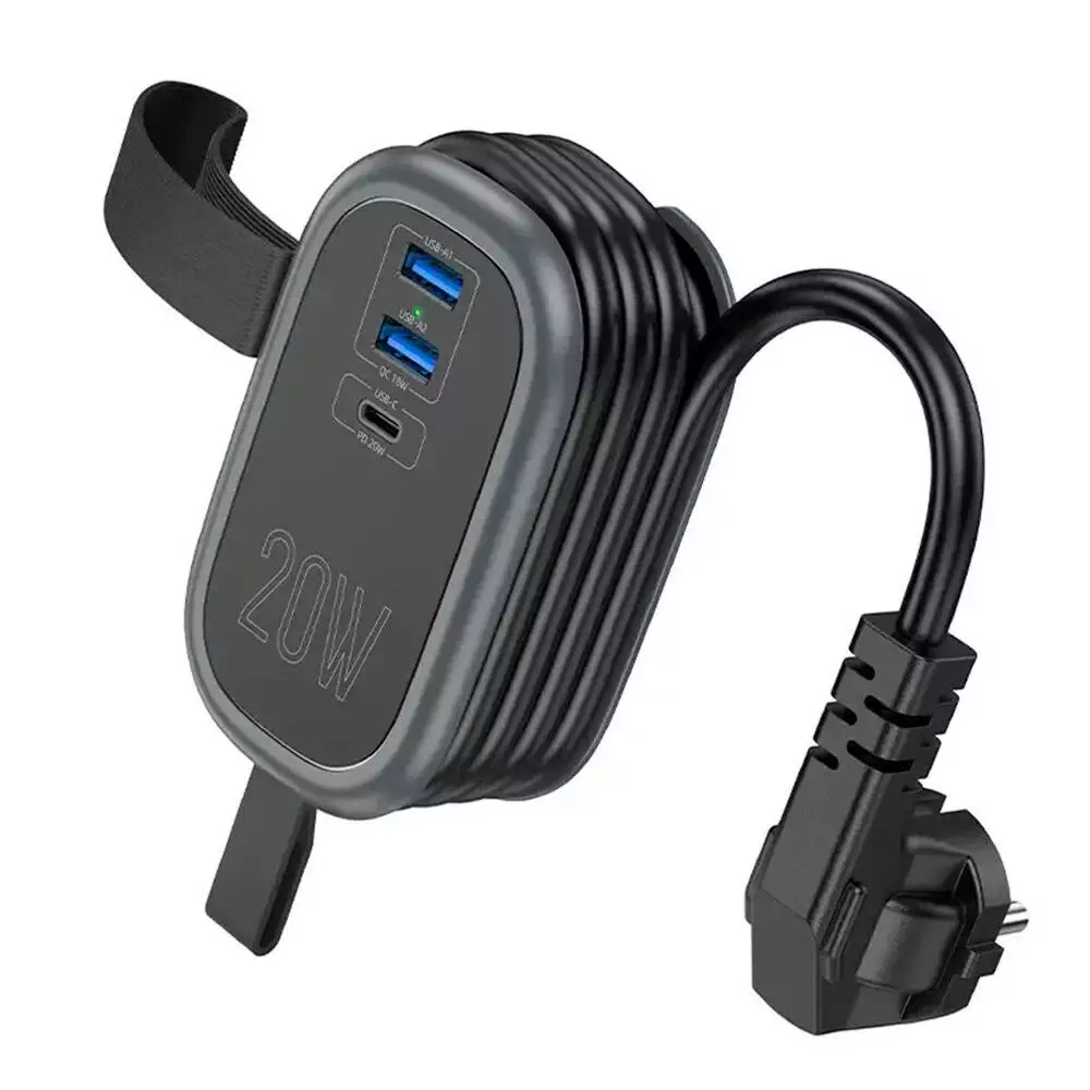 Фільтр HOCO NS7 на 1 розетку + 2 USB+ USB-C, 20W, кабель 1.1м, 220В, Black, Box