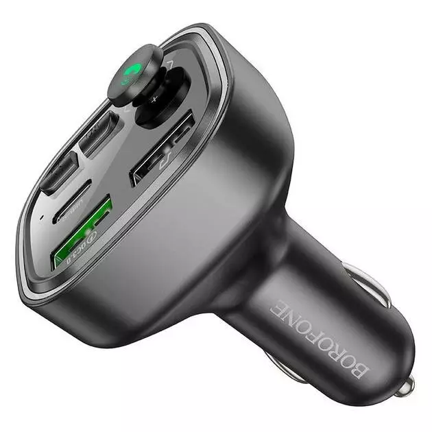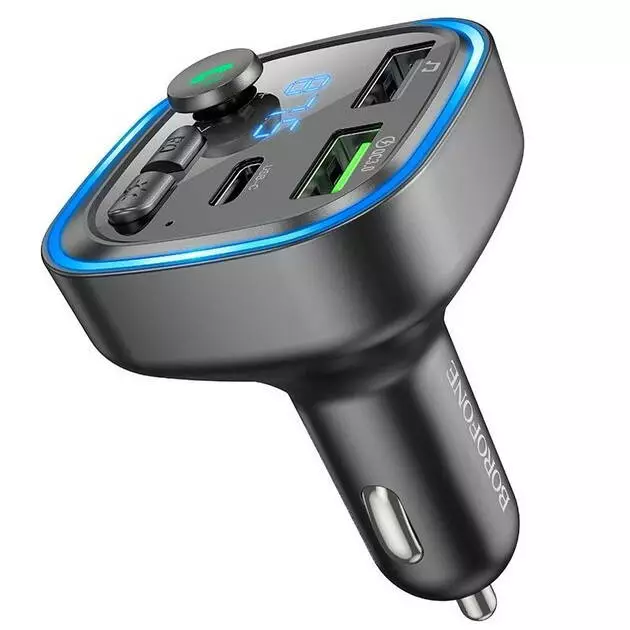 FM-модулятор Borofone BC48 є пристроєм для передачі аудіосигналу через FM-частоти. Він має сірий колір та поставляється в коробці.