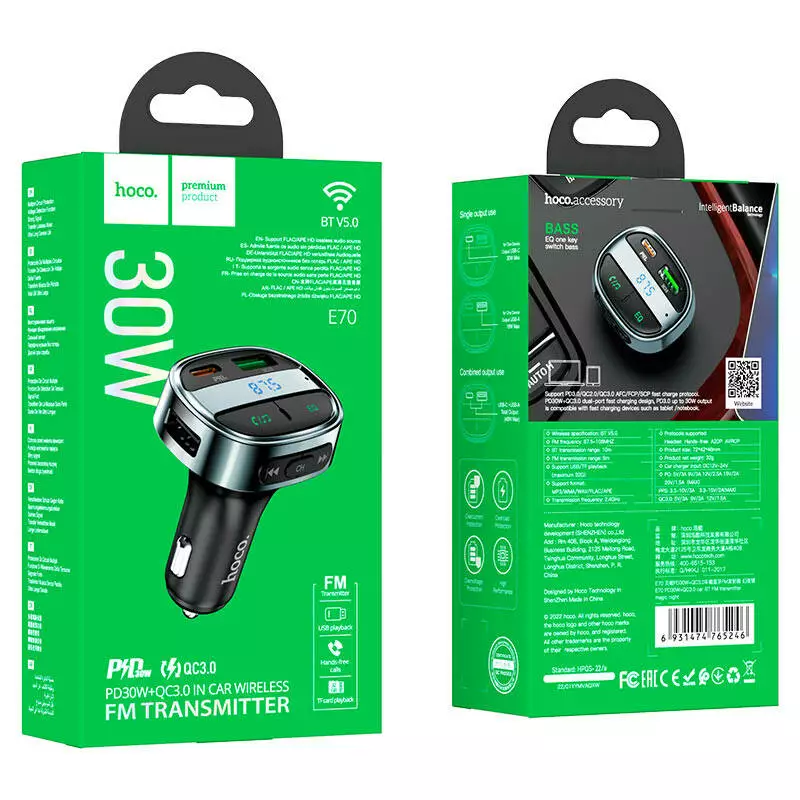 FM-модулятор HOCO E70, Black, Box