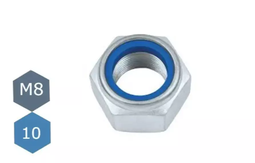 Гайка М8 самоконтряща з нейлоновим кільцем клас міцності 10.0 DIN 985