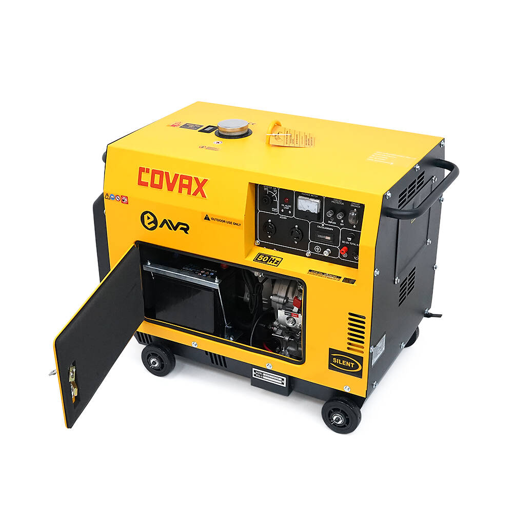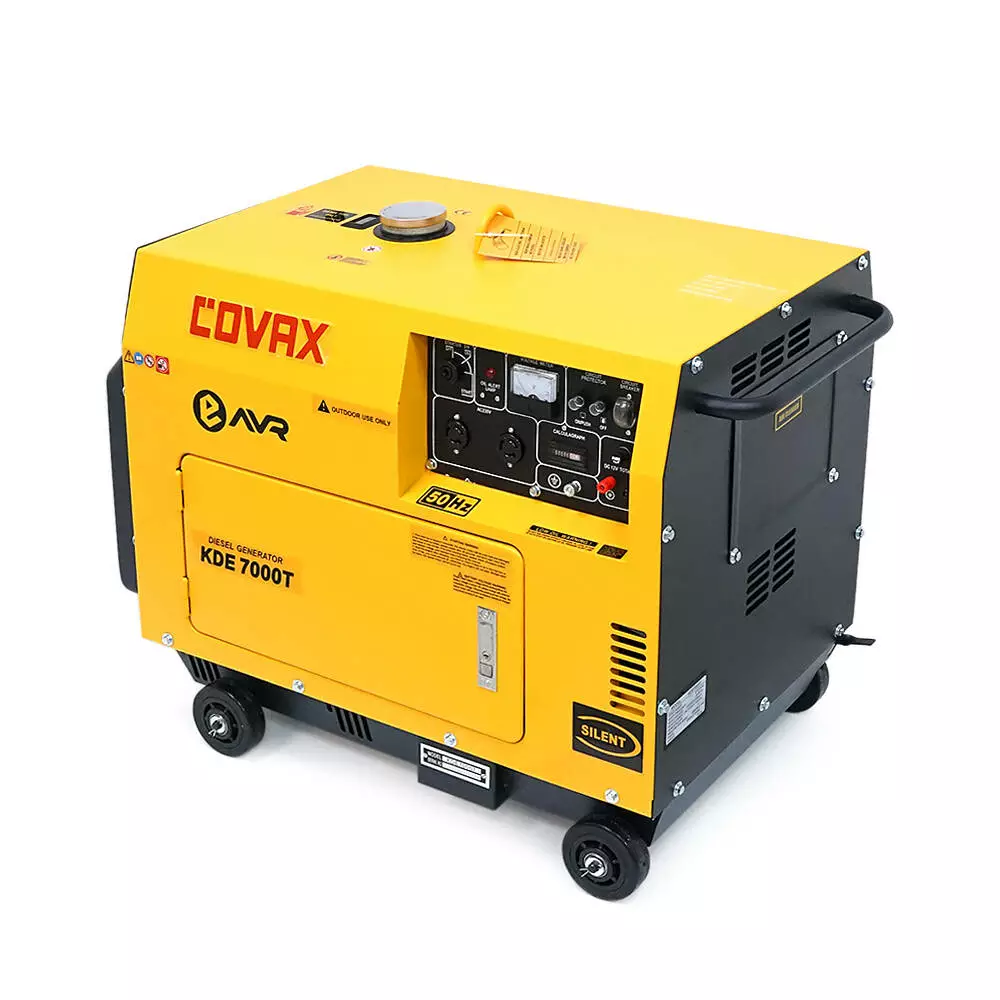 Генератор дизельний COVAX KDE7000T, 1-фазний 230V, 50Hz, 5.0kVA/4.5kW, бак 15 л, витрата 1-1.2 л/год, пуск: стартер, 920x520x780 мм, 145 кг