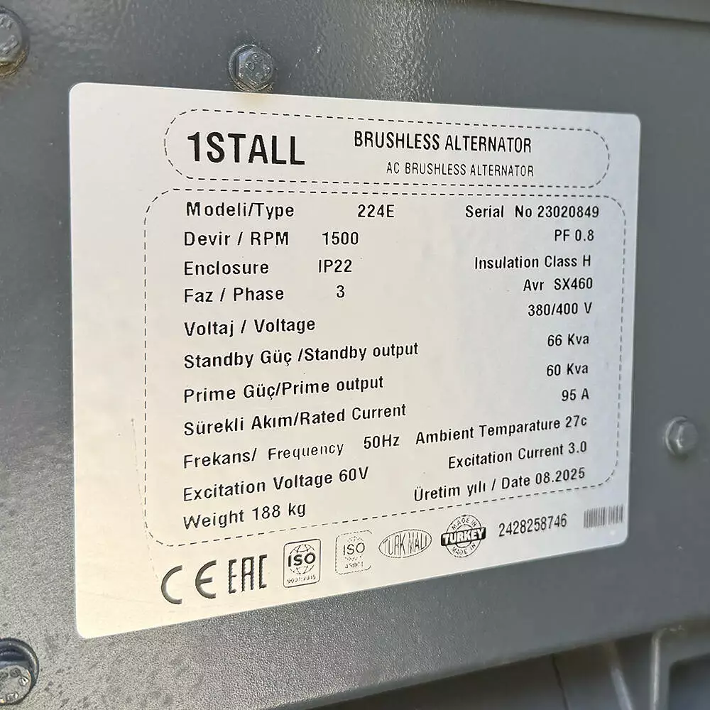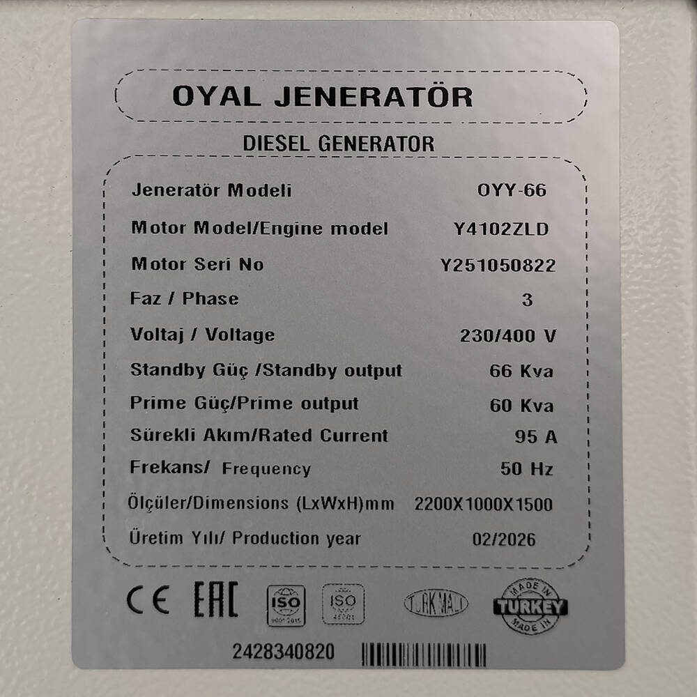 Генератор дизельный OYAL OYY-66 YANG DONG Y4102ZLD 66KVA/52.8KW, Alternator OYL224E, расход 75% нагрузки - 10.2 Литров/Час, 230/400V, 50Hz (AVR+ATS) 2400*1000*1500mm, 1040kg, 170L