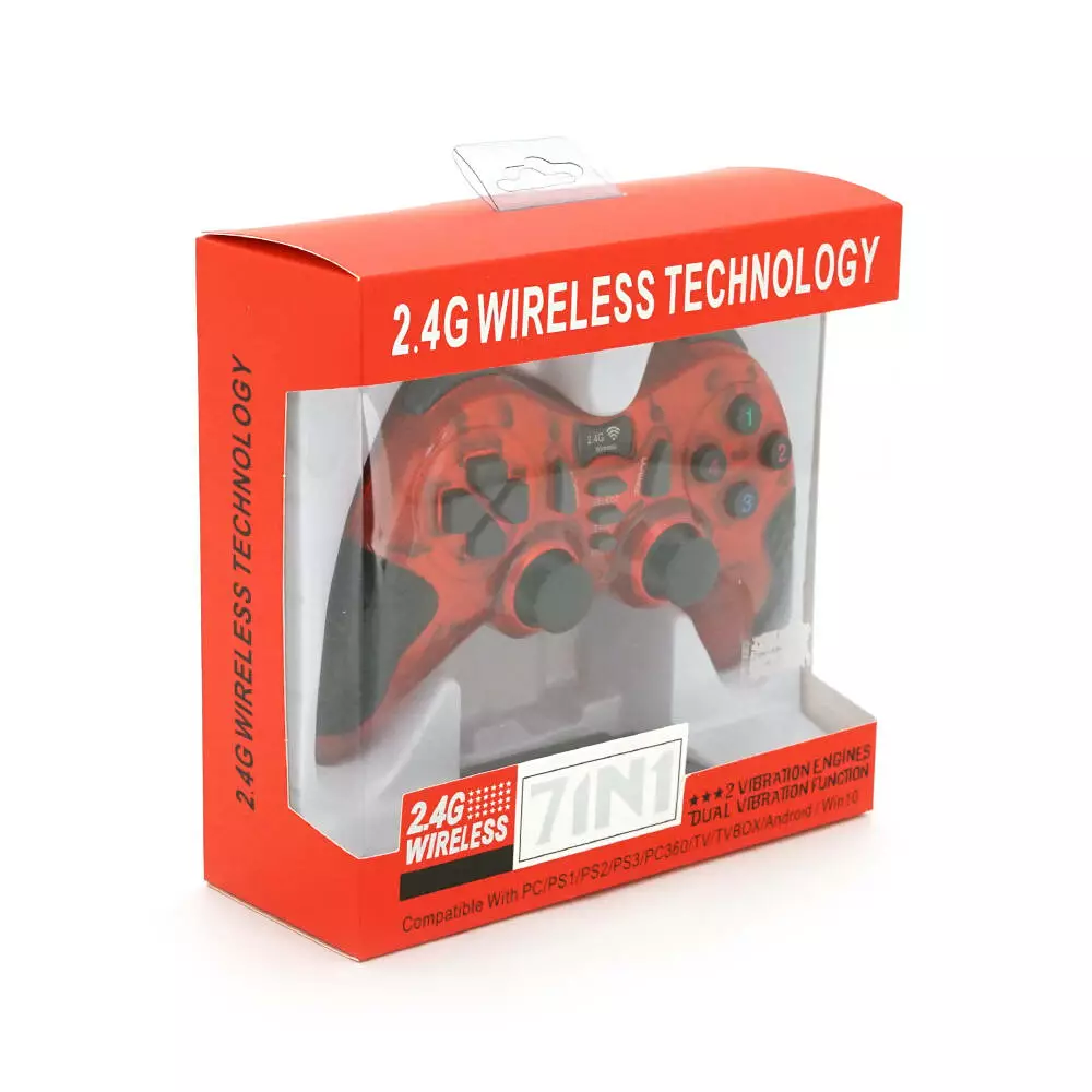Геймпад бездротовий 7 в 1 для PC/PS1/PS2/PS3/PC360/TV/TV BOX/Android/Win10, живлення від 2*ААА(немає в помплекті), Red, Blister