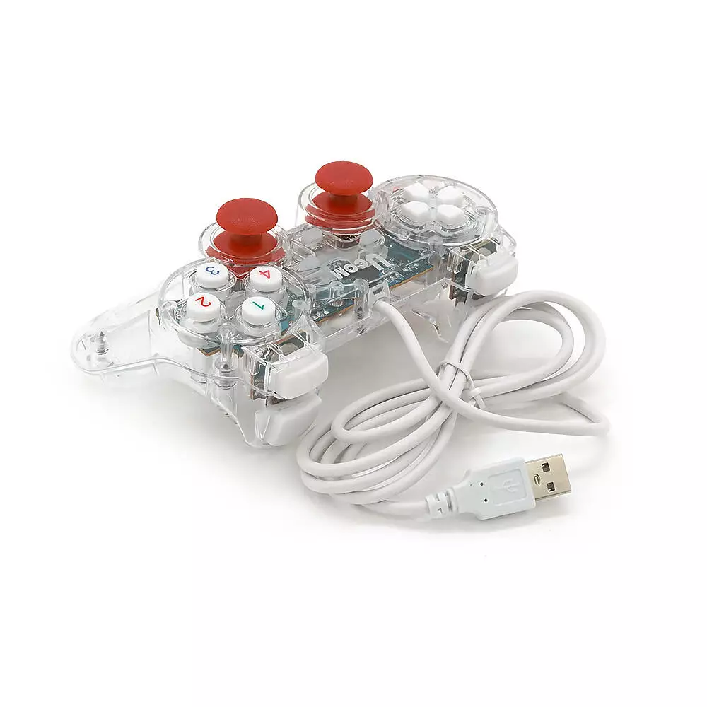 комп'ютером. Цей дротовий геймпад має прозорий дизайн та