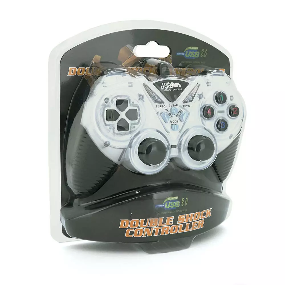 Геймпад провідний для ПК USB-908 Double Shock (білий) - зручний пристрій для ігор на комп'ютері з подвійним ударом, підключається по USB 2.0.