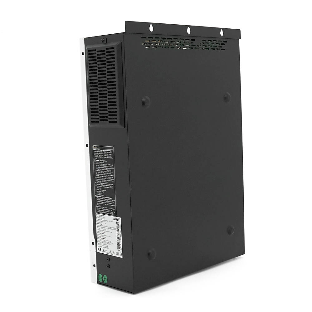 Гібридний інвертор MUST PV18-6048ECO є потужним багатофункціональним пристроєм, який поєднує в собі інвертор, MPPT сонячний контролер і зарядний пристрій для акумуляторних батарей. Модель потужністю 6000 Вт із робочою напругою 48 В забезпечує безперебійне електроживлення за рахунок інтелектуального керування трьома джерелами енергії: сонячними панелями, мережею змінного струму та акумуляторами. Ключовою перевагою інвертора є можливість роботи без акумулятора, що дозволяє використовувати енергію сонячних панелей або мережі.