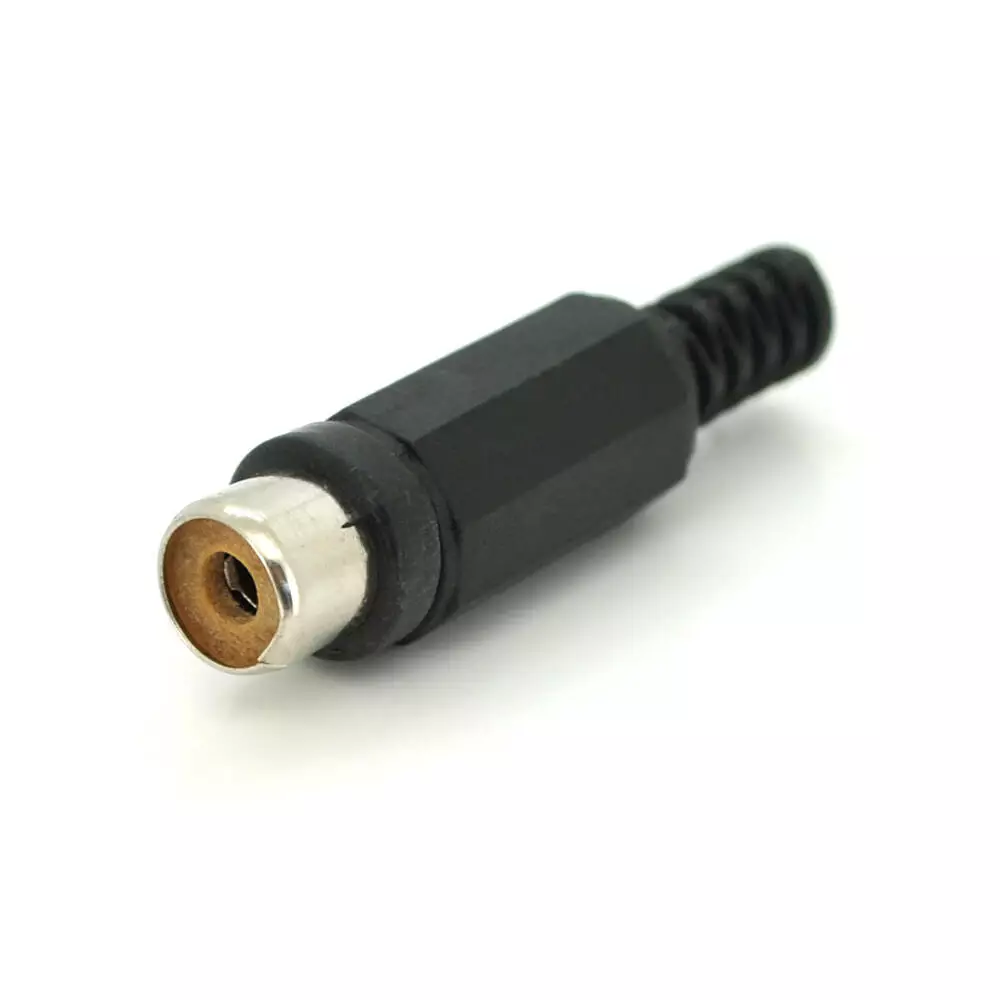Таким чином, це гніздо RCA із пластмаси, призначене для підключення кабелю шляхом паяння.