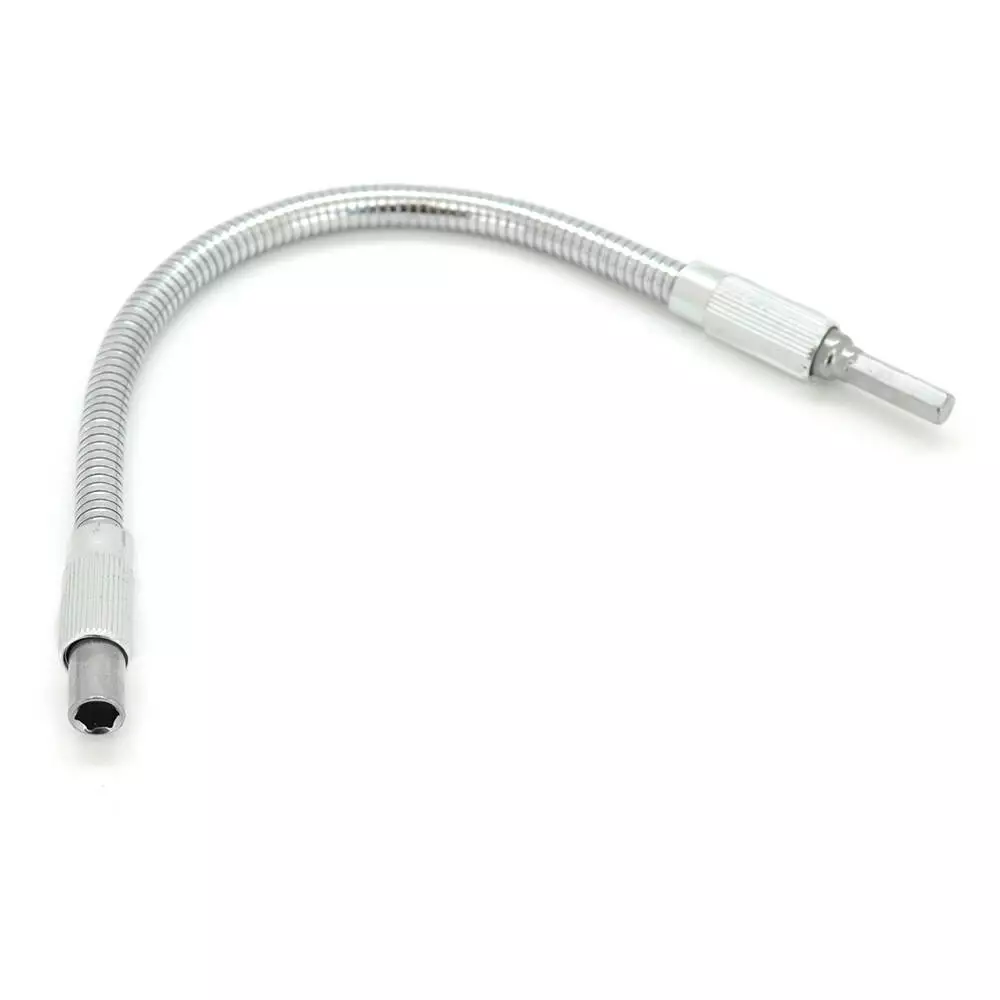 Подовжувач вставляється в патрон шуруповерта або дриля, а його шестигранне гніздо встановлюється потрібна біта. Завдяки гнучкості перехідника можна працювати під різними кутами, огинаючи перешкоди. Це особливо корисно при складанні меблів, ремонті техніки, монтажі у вузьких нішах або інших ситуаціях, де прямий доступ утруднений.