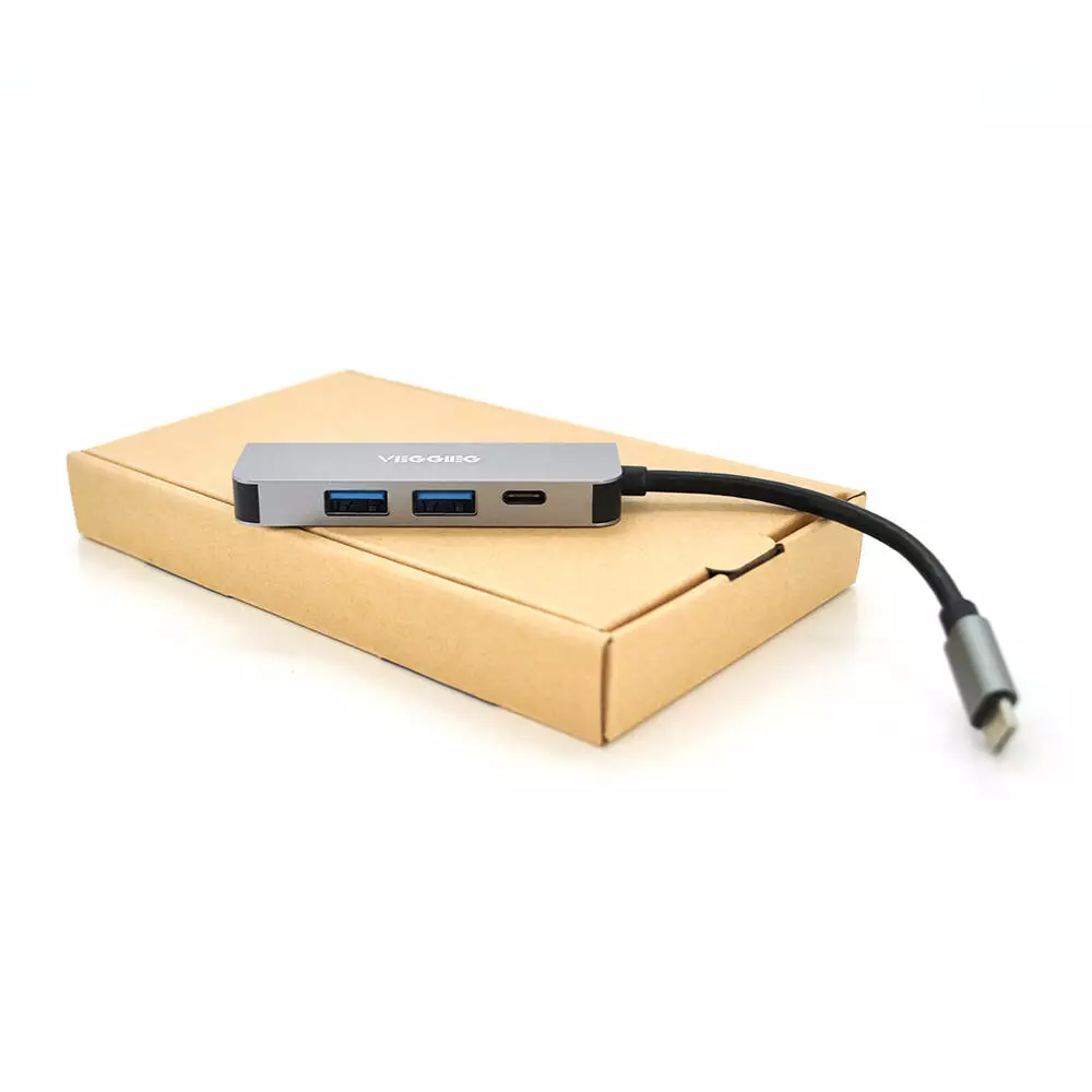Хаб-конвертор VEGGIEG TC04 Type-C (тато) на Type-C (мама) + USB3.0 * 2 (мама) + HDMI (мама) здатний розширити можливості ноутбука з роз'ємом Type C. Корпус виконаний з надійного і якісного матеріалу. Хаб-конвертор має ергономічний дизайн.