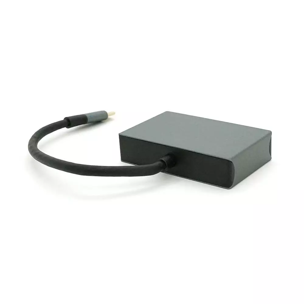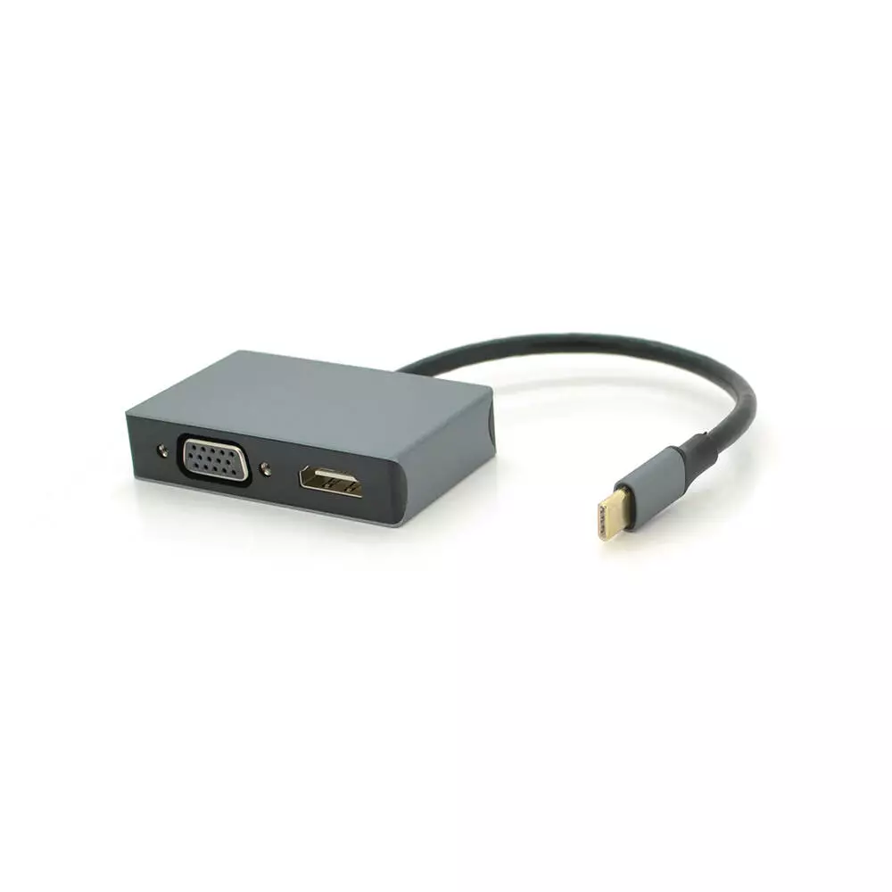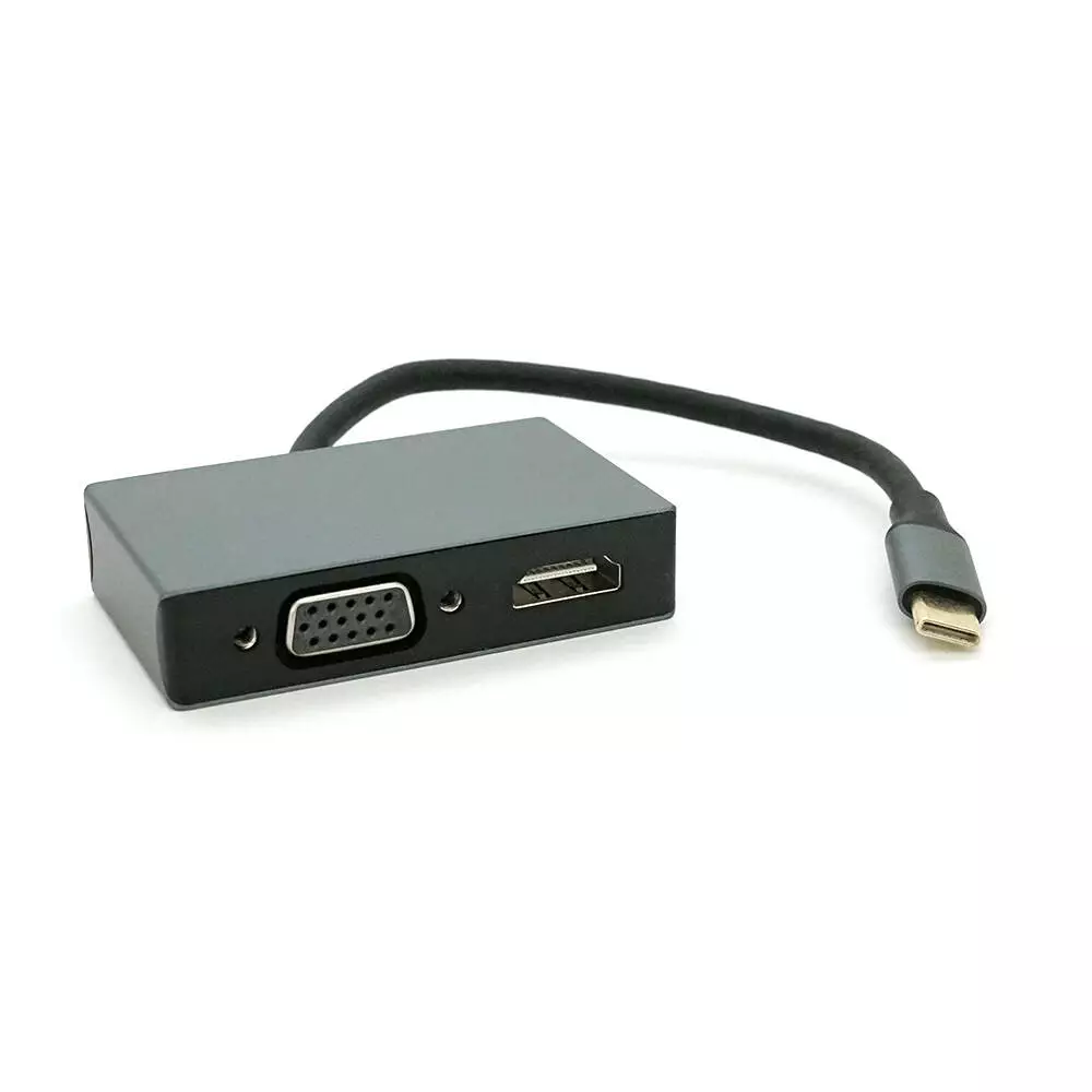 Хаб Type-C(папа) алюмінієвий, HDMI(мама)+VGA(мама), 23cm, Silver