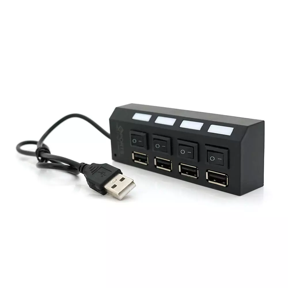 Хаб USB 2.0 4 порти з перемикачами на кожен порт, Black, 480Mbts High Speed, підтримка до 0,5ТВ, живлення від USB, Blister Q100