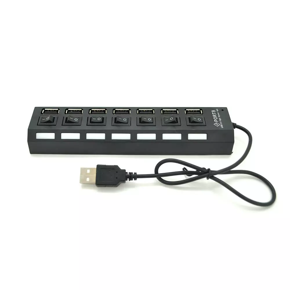 Хаб USB 2.0 7 портів з перемикачами на кожен порт, Black, 480Mbts High Speed, живлення від USB, Blister Q100