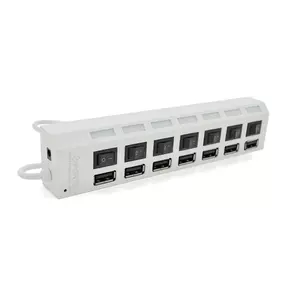 Хаб USB 2.0 7 портів з перемикачами на кожен порт, White, 480Mbts High Speed, живлення від USB, Blister Q100