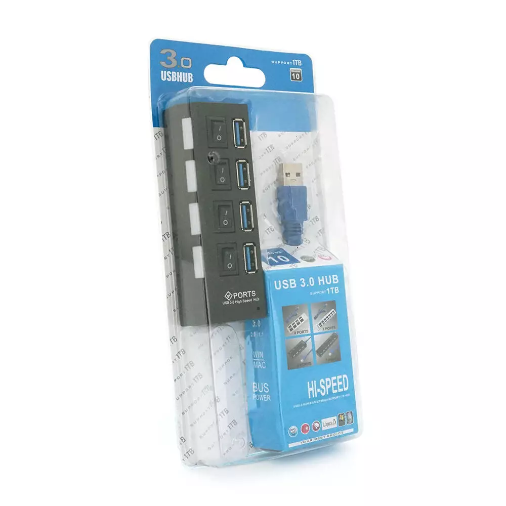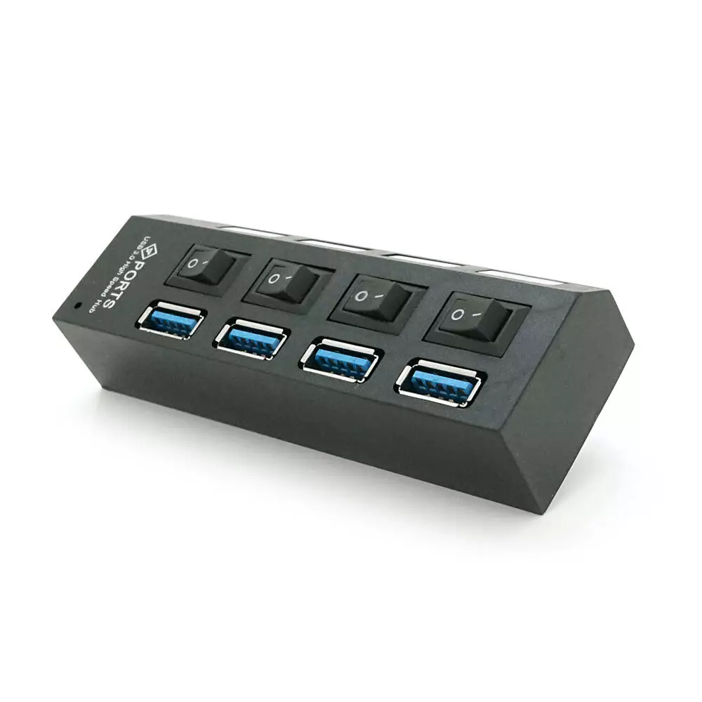 Хаб USB 3.0, 4 порти, з перемикачами, підтримка до 1TB, Пакет
