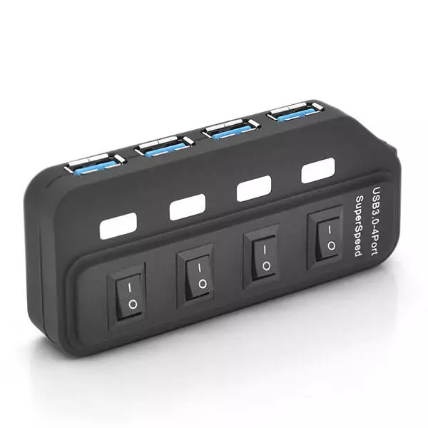 Хаб USB 3.0, 4 порти, з перемикачами, підтримка до 2TB, 5Gb/s, кабель 0,6м, Блістер