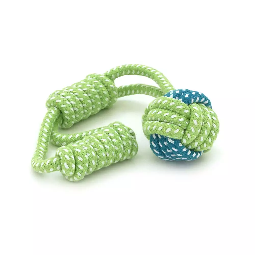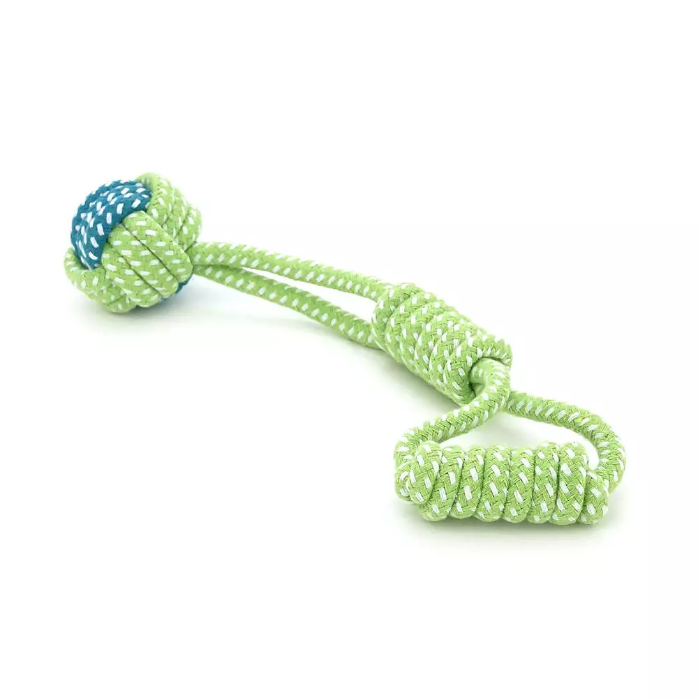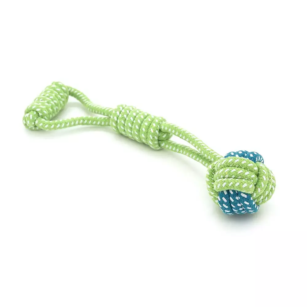 Ця іграшка призначена для апортування, перетягування та жування, сприяючи фізичному розвитку та психічній рівновазі собаки. Вона ефективно вирішує завдання механічного очищення зубів від нальоту, задоволення жувального інстинкту та організації спільного дозвілля із власником. Міцна структура мотузки витримує активне жування та кидки, забезпечуючи тривалу експлуатацію.