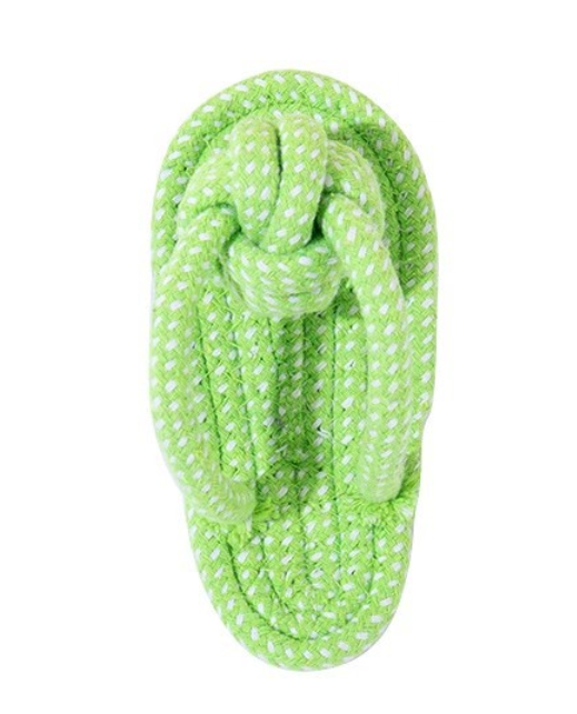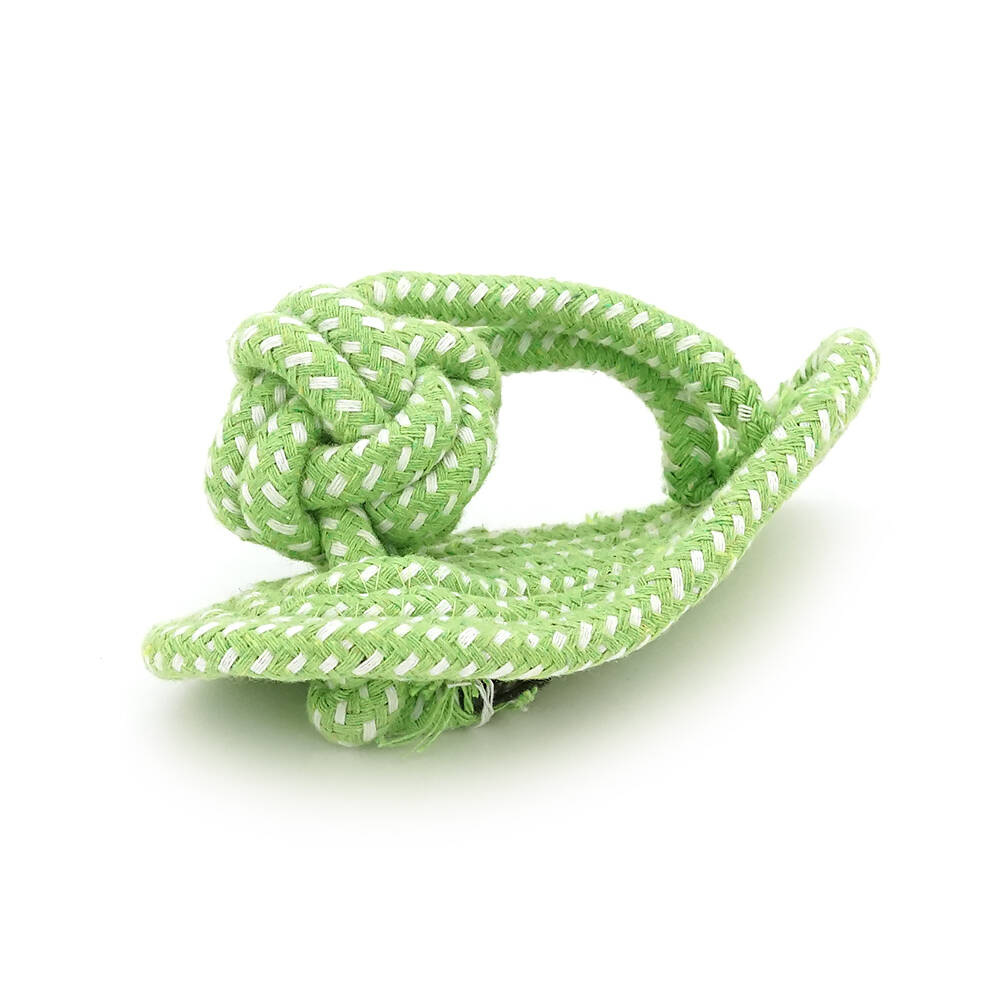 Іграшка для собак мотузка-апорт із вузлами. Форма капця. Розмір 7х15, 5 см. Колір зелено-синій.