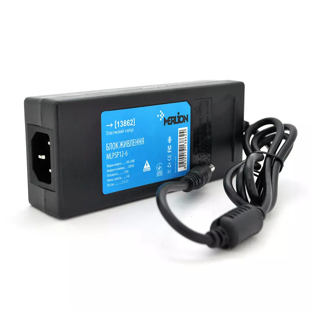 Імпульсний адаптер живлення Merlion MLPSP12-6, 12В 6А (72Вт) штекер 5,5/2,5 + шнур живлення