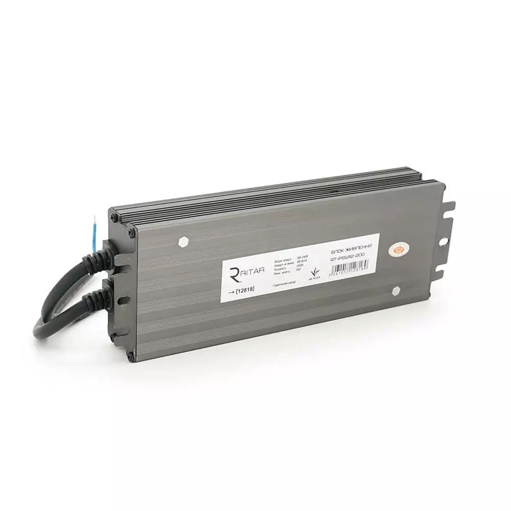 Імпульсний блок живлення герметичний Ritar RTPSW12-200 12В 16.5А (200Вт) IP67 1,0 кг (215*75*35 мм)