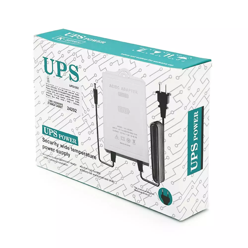 Імпульсний UPS із вбудованим АКБ Mini Outer UPS1202, 12V 2А; акб Lithium 0,6А; Plastic Box IP40; В130/Ш80/Г33мм; кріплення