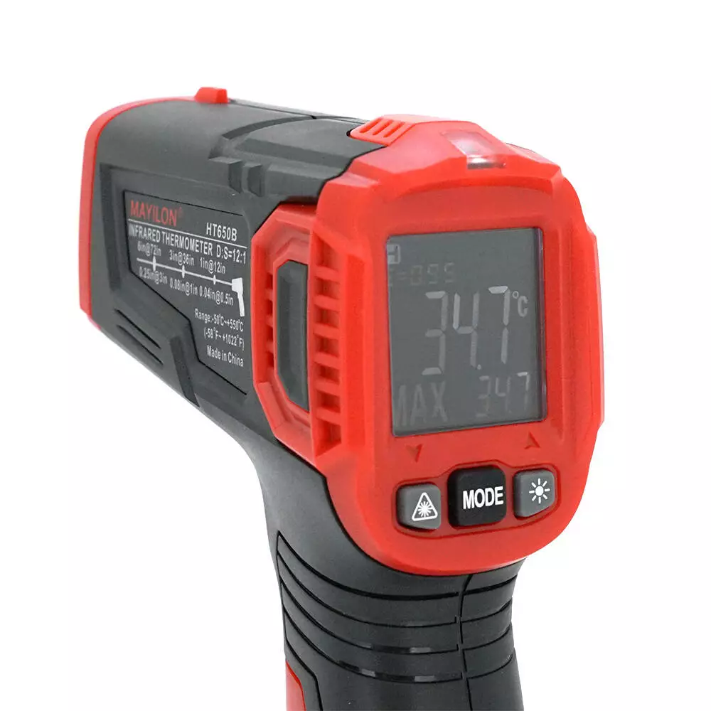 Інфрачервоний термометр Mayilon HT-650B, Чорний, надає швидкий та точний метод вимірювання температури без контакту з об'єктом.