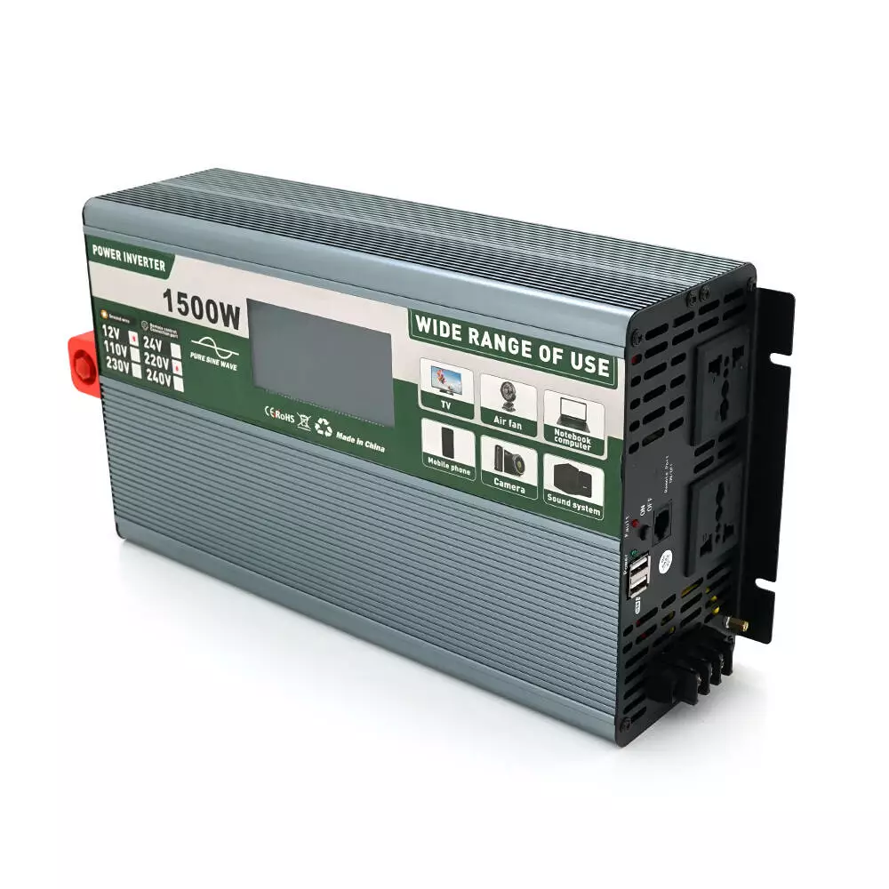 Інвертор напруги Demuda DMDPSW-1500W, 12V/220V, 1500W з правильною синусоїдою, 2 універсальні розетки, 2 USB, Rj 45, клемні дроти, Q6