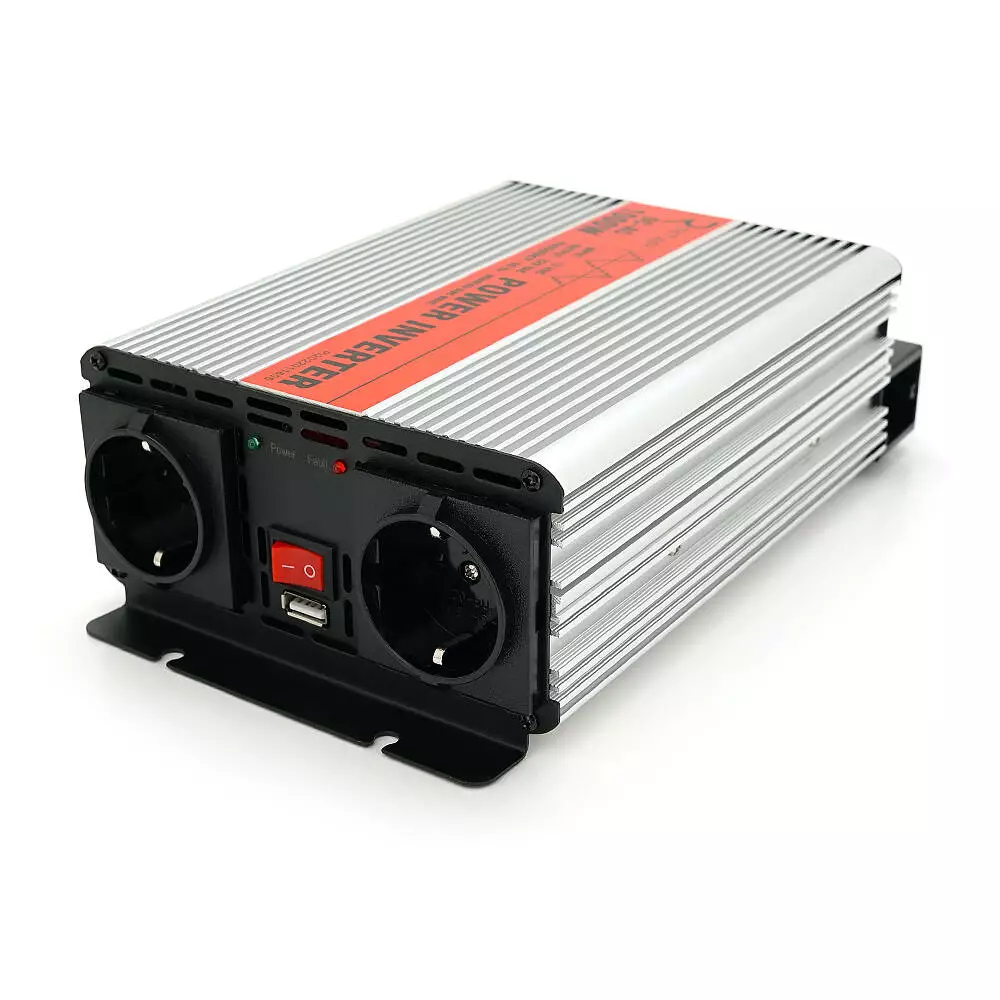 Інвертор напруги RITAR RSX-1000, 12V/220V, 1000W з апроксимувати синусоїдою, 2xShuko, 1xUSB, клемні дроти, BOX, Q8
