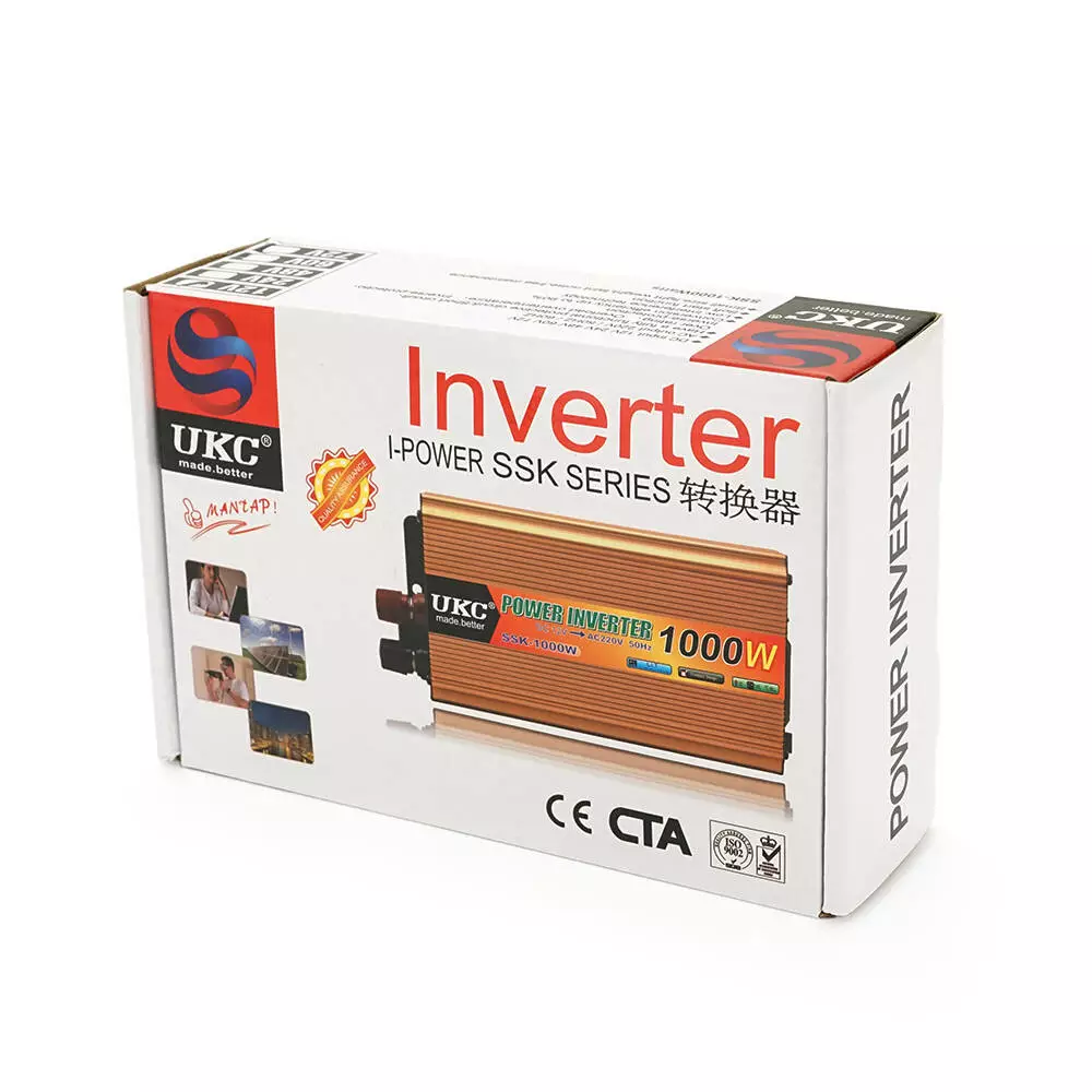 Інвертор напруги UKC 1000ВА(600Вт), 12/220V, approximated, 1 універсальна розетка, клеми + крокодили