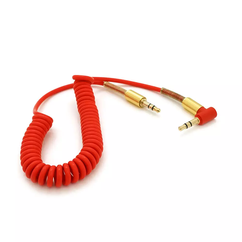Кабель AUX Audio DC3.5 тато-тато 1.5м пружина, CCA Stereo Jack, (круглий) Red cable, Box