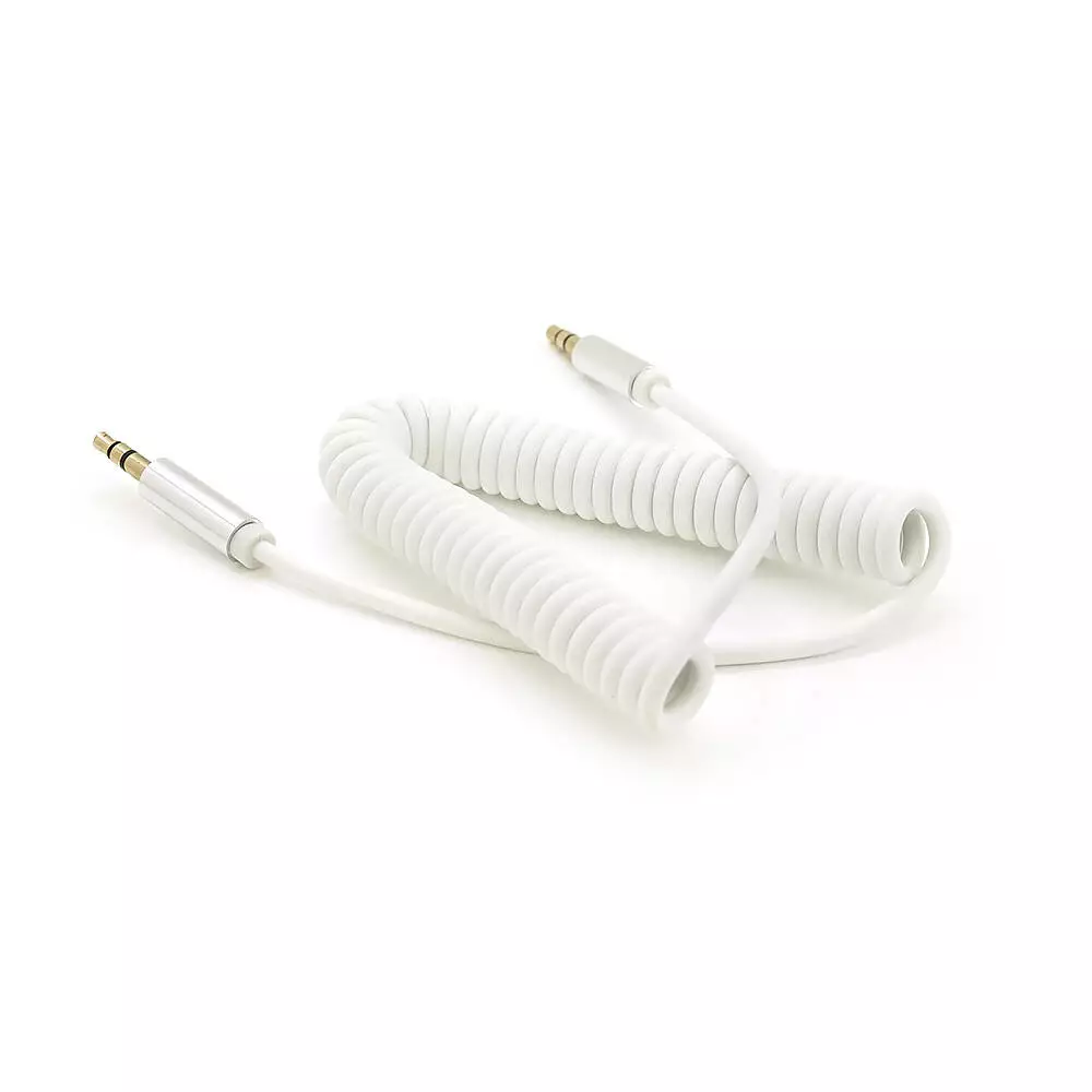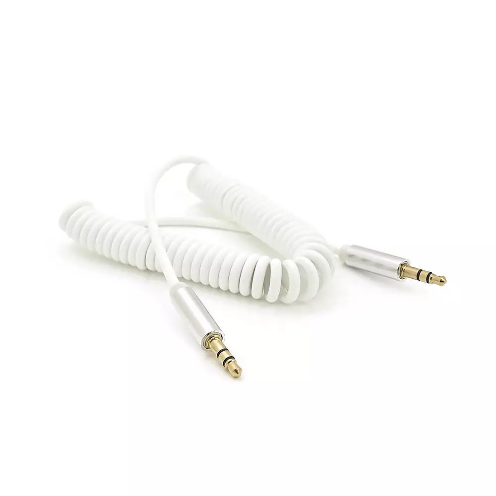 Кабель AUX Audio DC3.5 тато-тато 1.5м пружина, CCA Stereo Jack, (круглий) White cable, Box