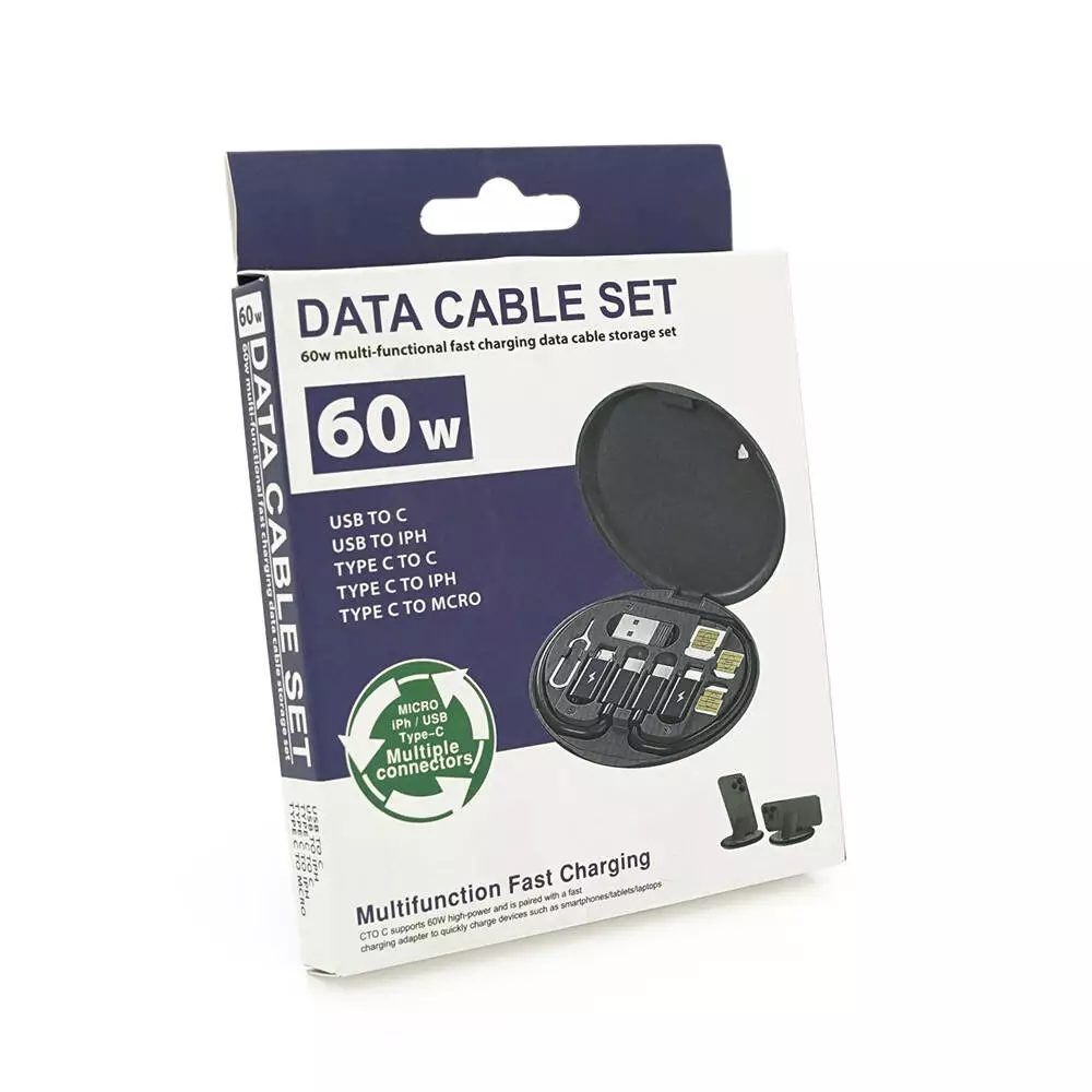 Кабель Data Cable Set, Type-C-Type-C+ перехідники (USB+Lighting+Micro), 60W, White, довжина 0.2м, Case
