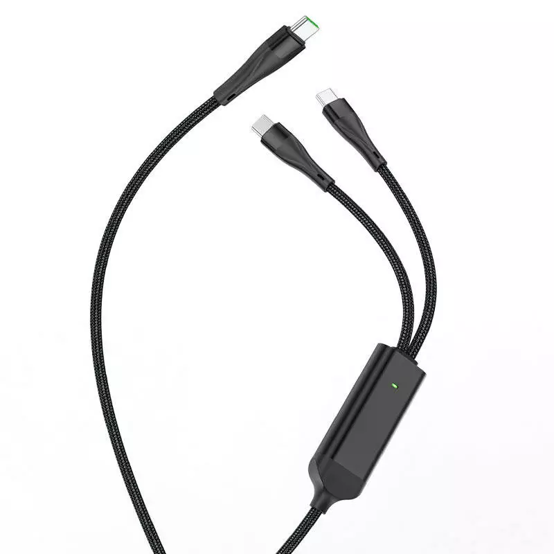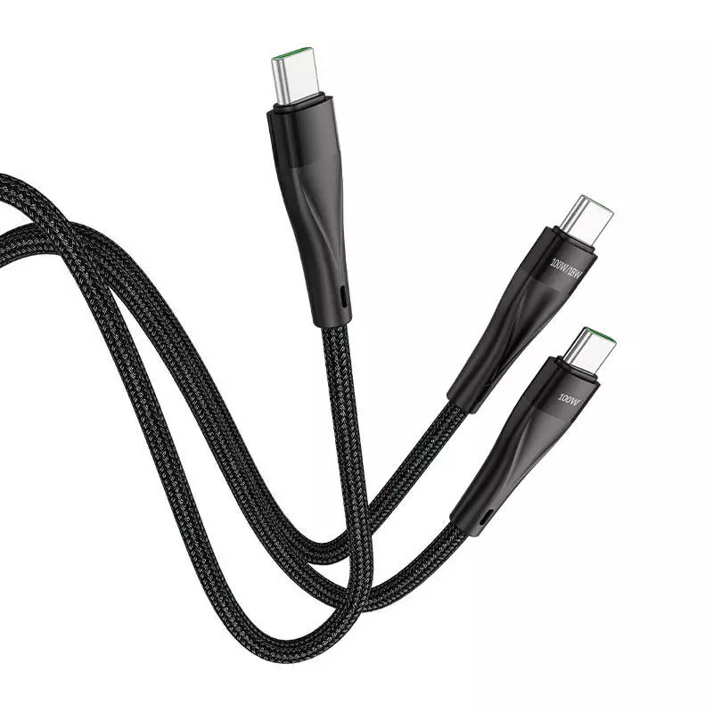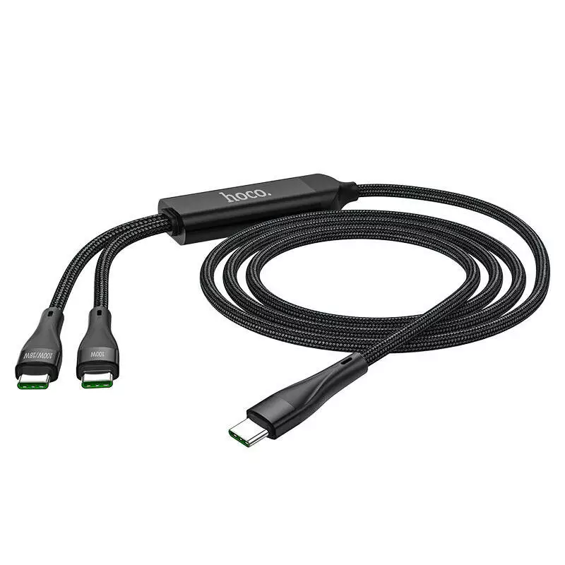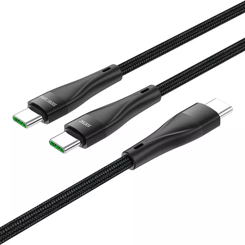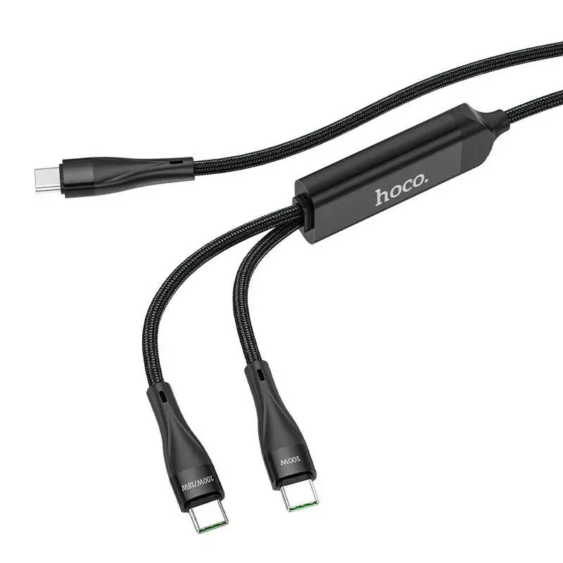 Кабель Hoco U102, Type-C-2Type-C, 100W, такневе обплетення, довжина 1,5м, Black, BOX