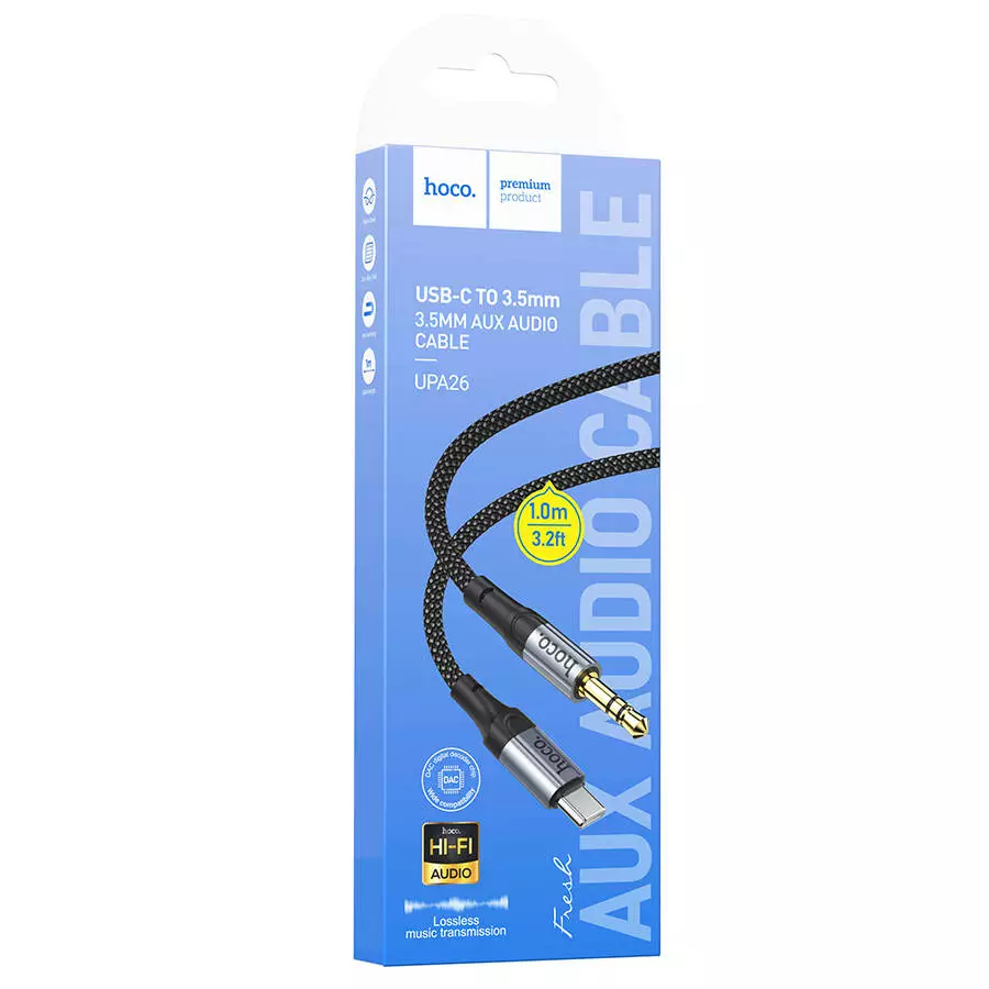 Кабель HOCO UPA26 DC3.5 (тато) => Type-C (тато), круглий в обплетенні, 1м, Black, Box