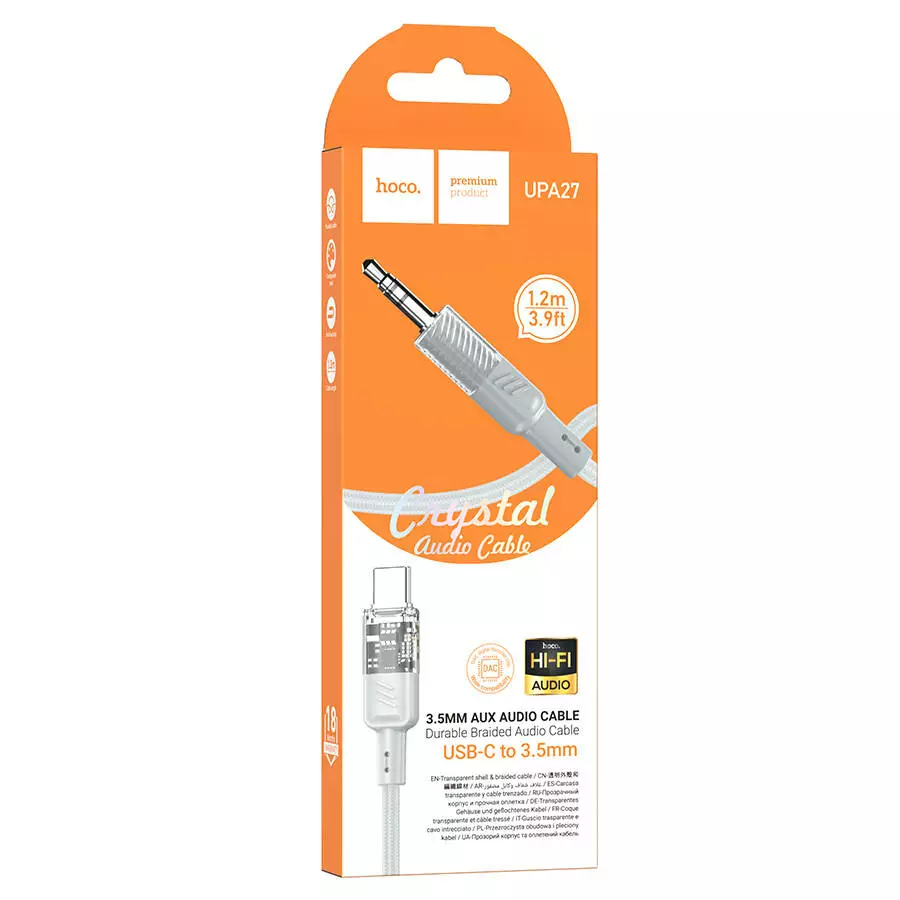 Кабель HOCO UPA27 DC3.5 (тато) => Type-C (тато), круглий в обплетенні, 1.2м, Gray, Box