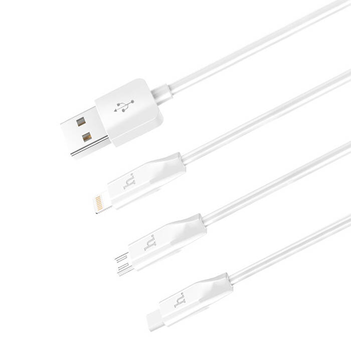 Кабель HOCO X1 USB-1 3 in 1 Micro/Iphone/Type-C, 2A, довжина 1м, White, Box