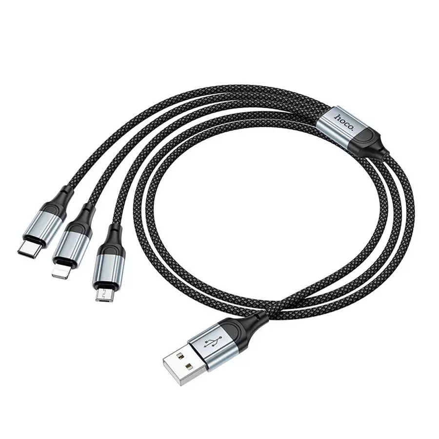 Кабель HOCO X102 USB-1 3 in 1 Micro/Iphone/Type-C, 2A, довжина 1м, Black, Box