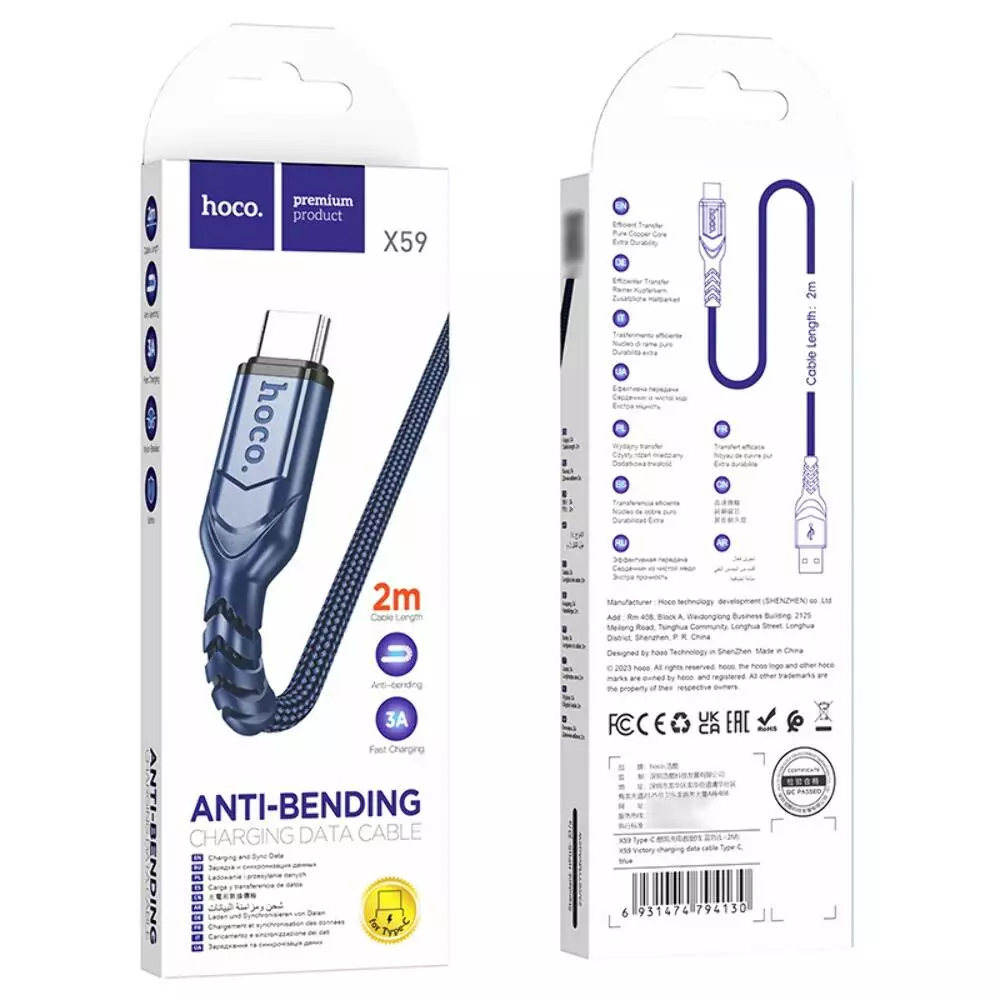 Кабель Hoco X59, Type-C-USB, 3A, Black, довжина 2м, BOX