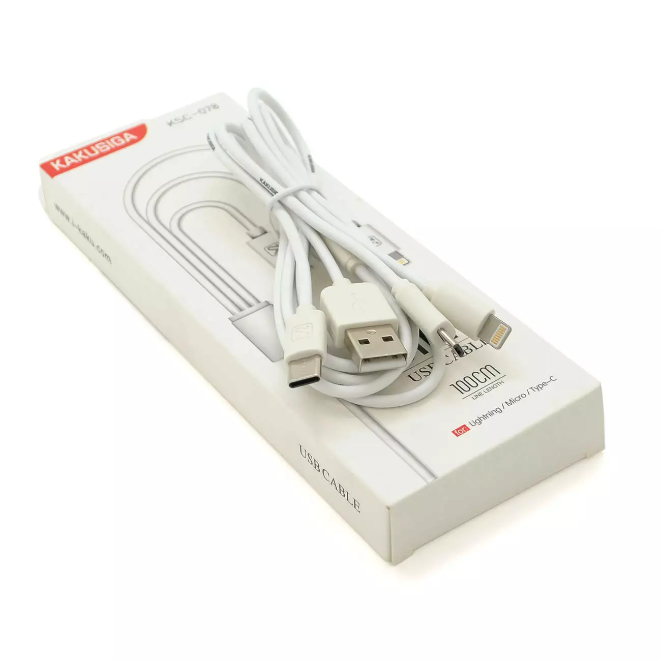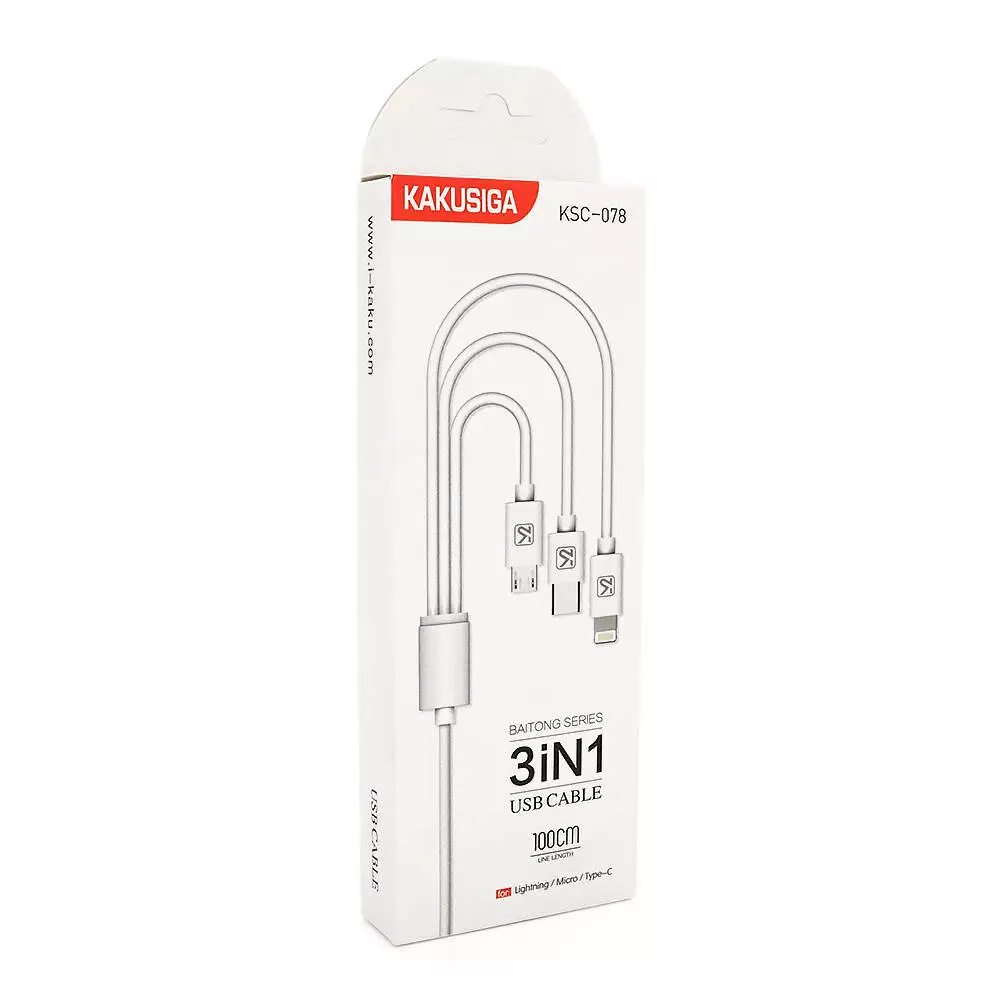 Кабель KSC-078 BAITONG charging data cable3 in 1 Micro / Iphone / Type-C, довжина 1м, White, BOX